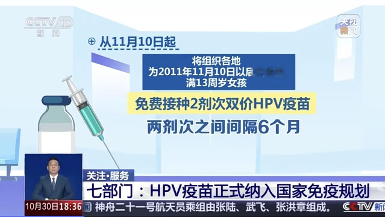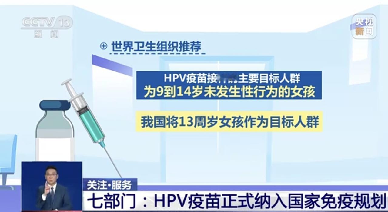 普大喜奔!我国年满13岁女孩可免费接种HPV疫苗了! 据央视新闻报道,国家疾控局、国家卫生健康委、教育部、工业和信息化部、财政部、国家药监局、国务院妇儿工委办公室(30日)联合发出通知,经国务院同意,将人乳头瘤病毒疫苗也就是HPV疫苗纳入国家免疫规划,自2025年11月10日起,组织各地为2011年11月10日以后出生的满13周岁女孩免费接种2剂次双价HPV疫苗(间隔6个月)。 接种人乳头瘤病毒(HPV)疫苗能够有效预防高危型HPV感染,减少宫颈癌等疾病的发生。 大家熟知的香港明星梅艳芳,因为宫颈癌去世。她的姐姐梅爱芳也同样因宫颈癌于2000年去世。 演员朱媛媛,怀孕期间查出宫颈癌,但为了保住孩子,她坚持推迟治疗。产后她积极与病魔抗争近两年,最终不幸离世。 现在,我国推出了宫颈癌疫苗的免费接种,对广大13岁及以下女性无疑是一则好消息。 在此之前,HPV疫苗,属于自费接种项目,并且存在育苗紧张的情况。 一是费用高昂,一剂疫苗需要几百块,成年女性需要接种三针,1千至2千多元。而在更早期时候,三五千也是常事。 二是疫苗在内地需要预约,预约时间长且很难预约,甚至出现一苗难求的情况。有的甚至需要托关系找后门,才能接种上。一些经济条件较好的女性,特意选择去香港专程接种HPV疫苗。 高昂的费用,疫苗供应的紧张,都是HPV疫苗接种率低的主要原因。 如今,国家已将该项疫苗纳入计划免疫系统,所有的适龄女性都将能够免费接种。 据统计,目前我国有18个省份在全省或部分地区通过民生实事项目等形式,对适龄女孩免费接种HPV疫苗或给予补贴。 可以想象,随着HPV疫苗的免费接种,宫颈癌在中国的发病率,即将呈现断崖式下跌的情况。 这无疑,对于保护女性健康,是一个里程碑式的事件。 这也反映出我国的计划免疫已经从基础免疫不断拓宽,从最初的预防传染病疫苗(如卡介苗),转变到严重威胁国民健康的疾病疫苗。 国家坚持预防接种的战略性和公益性,体现大国担当,也是国家经济实力不断增强的体现。 HPV病毒 国产HPV疫苗