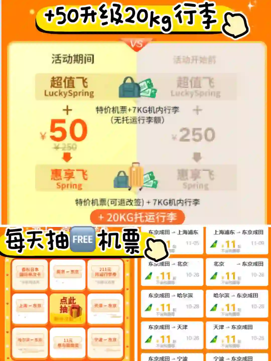 春秋航空日本航线飞东京,有活动的时候很便宜!一定要在活动的时候去抢,比如双十一就有如下几个羊毛: