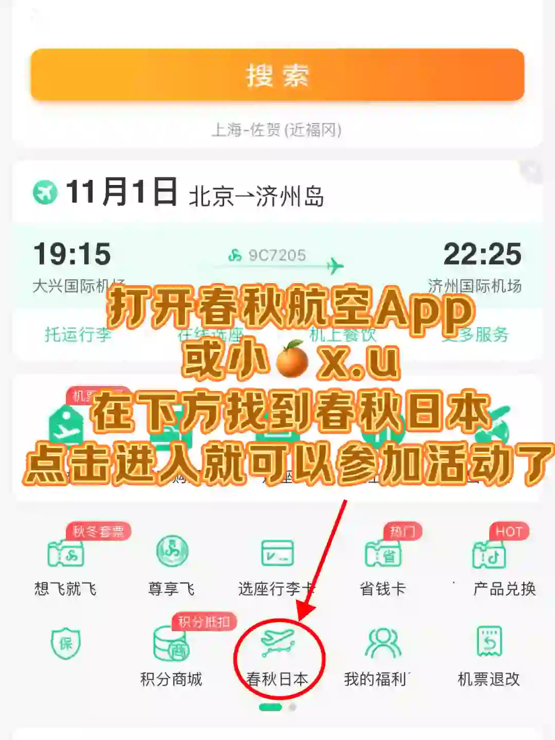 春秋航空app或春秋小🍊x点击下方的春秋日本即可到活动入口!(见图8-10)