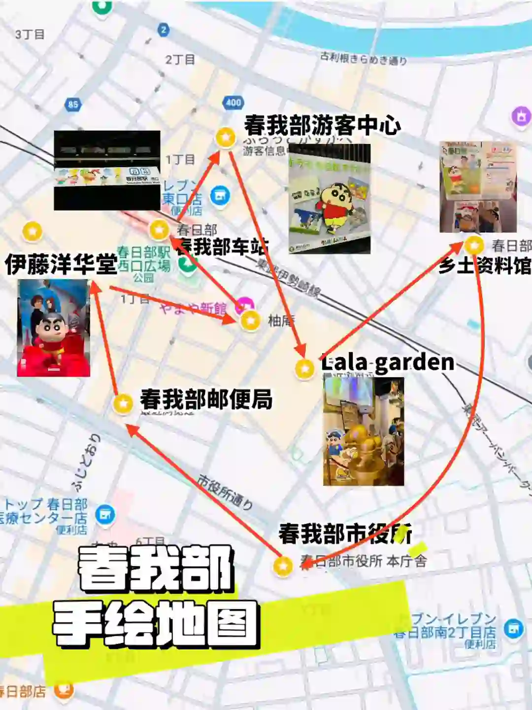 春日部站(西口)➡️春日部游客中心➡️LaLa garden➡️乡土资料馆➡️春日部市役所➡️春日部邮局➡️Ito-yokado➡️春日部站(东口)