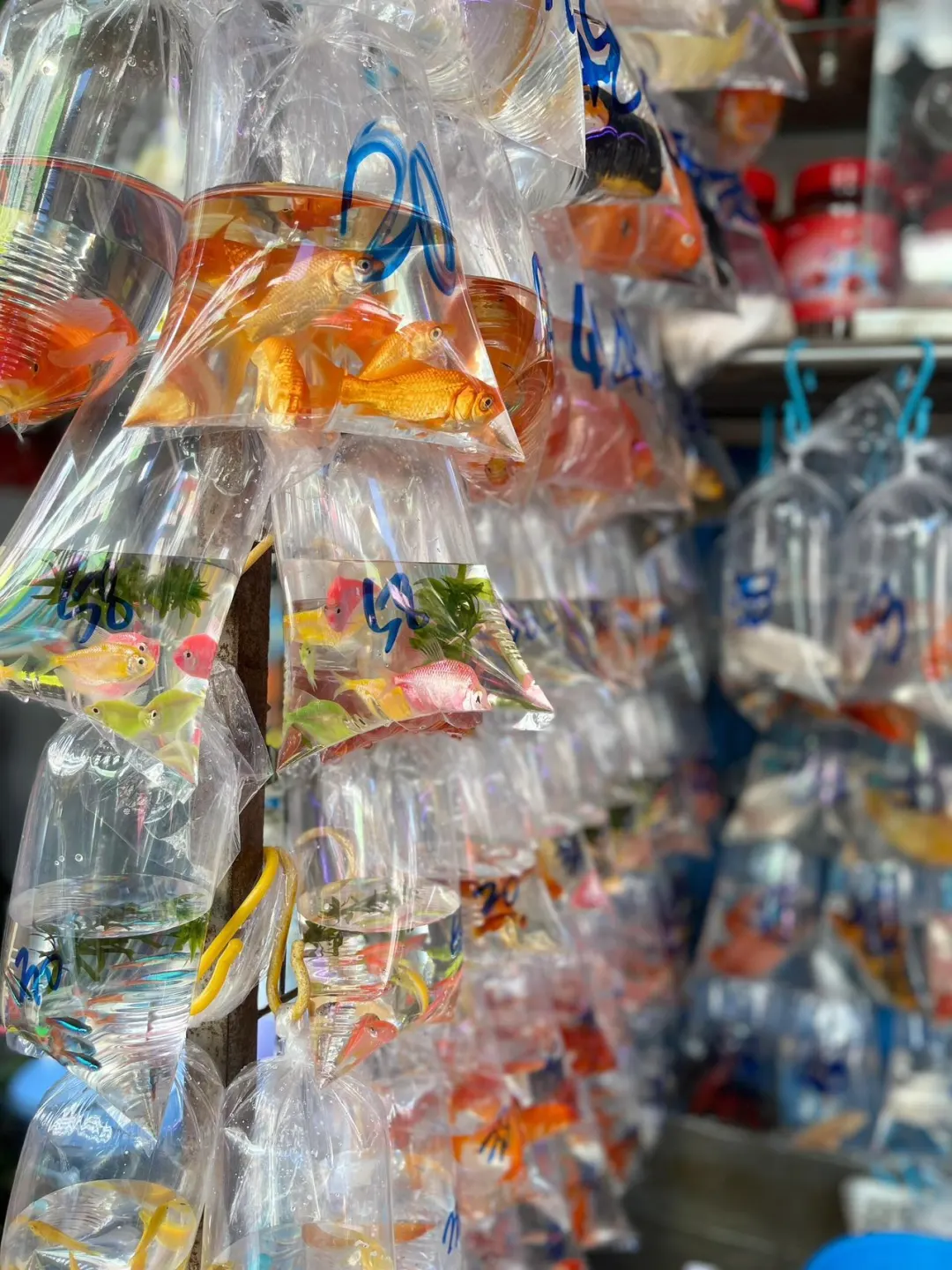 金鱼街:卖金鱼的,用透明的袋子挂着特别好看