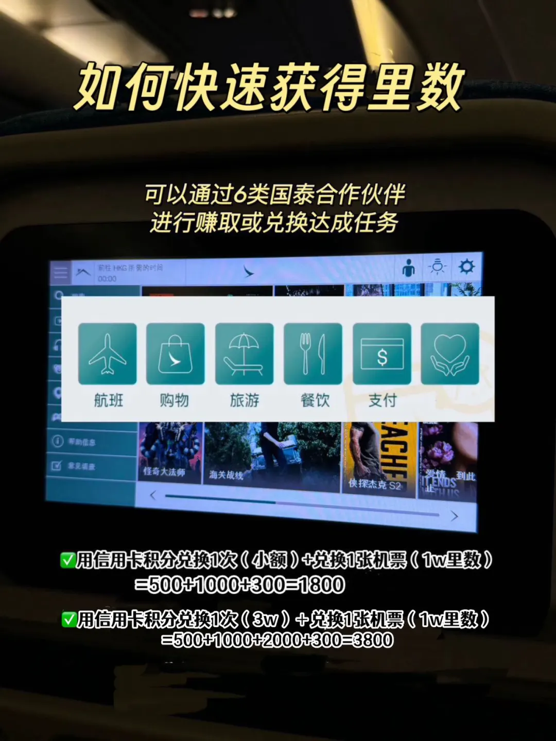 ✅用信用卡积分兑换至里数1次(+1000里数)+兑换1张香港机票(-1w里数)=500+1000+300=1800