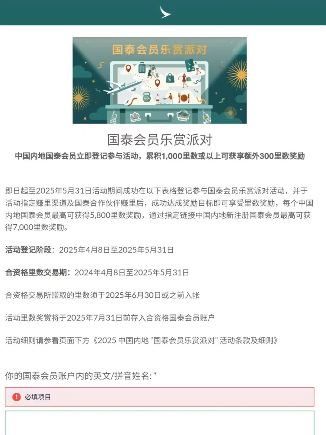 近期我发现国泰航空推出“国泰会员乐赏派对”完成任务至高可获7000里数!相当于香港飞东南亚的单程机票所需要的里数!非常简单!