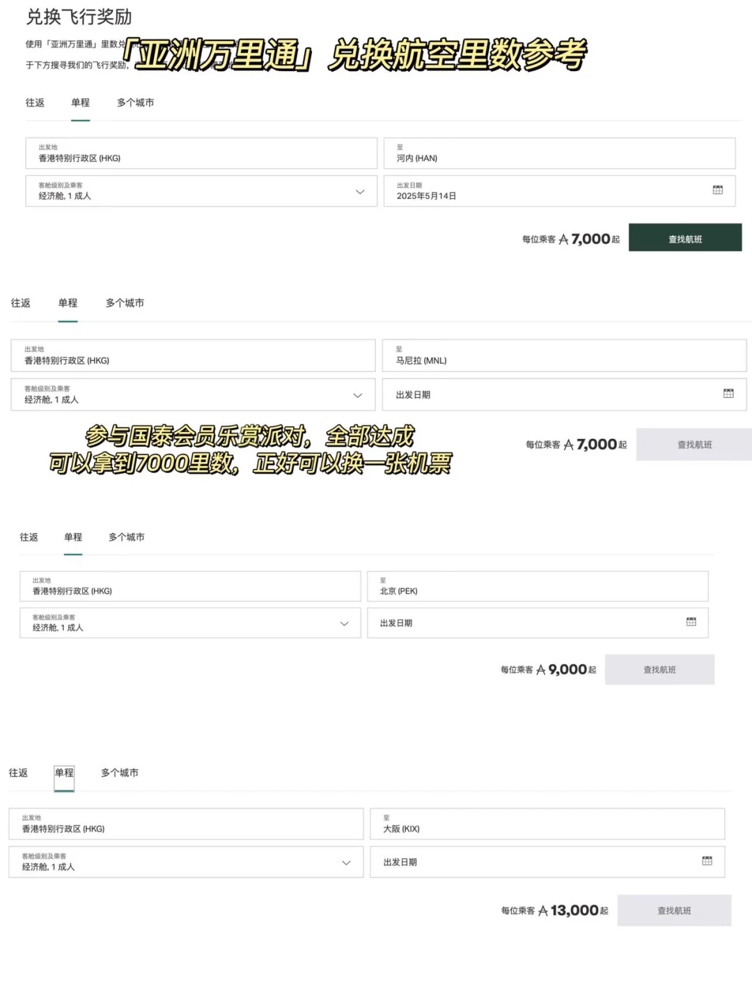 每次来香港旅游都会使用国泰航空的【亚洲万里通】里数兑换机票,香港兑换机票只要7000里数起(图5)