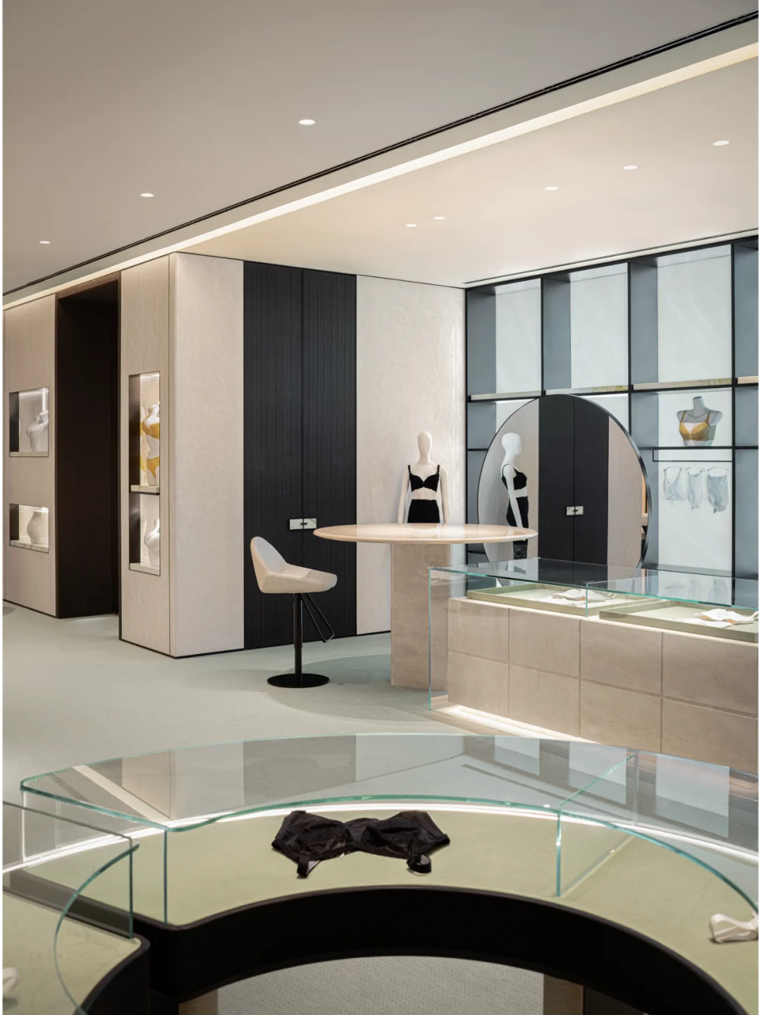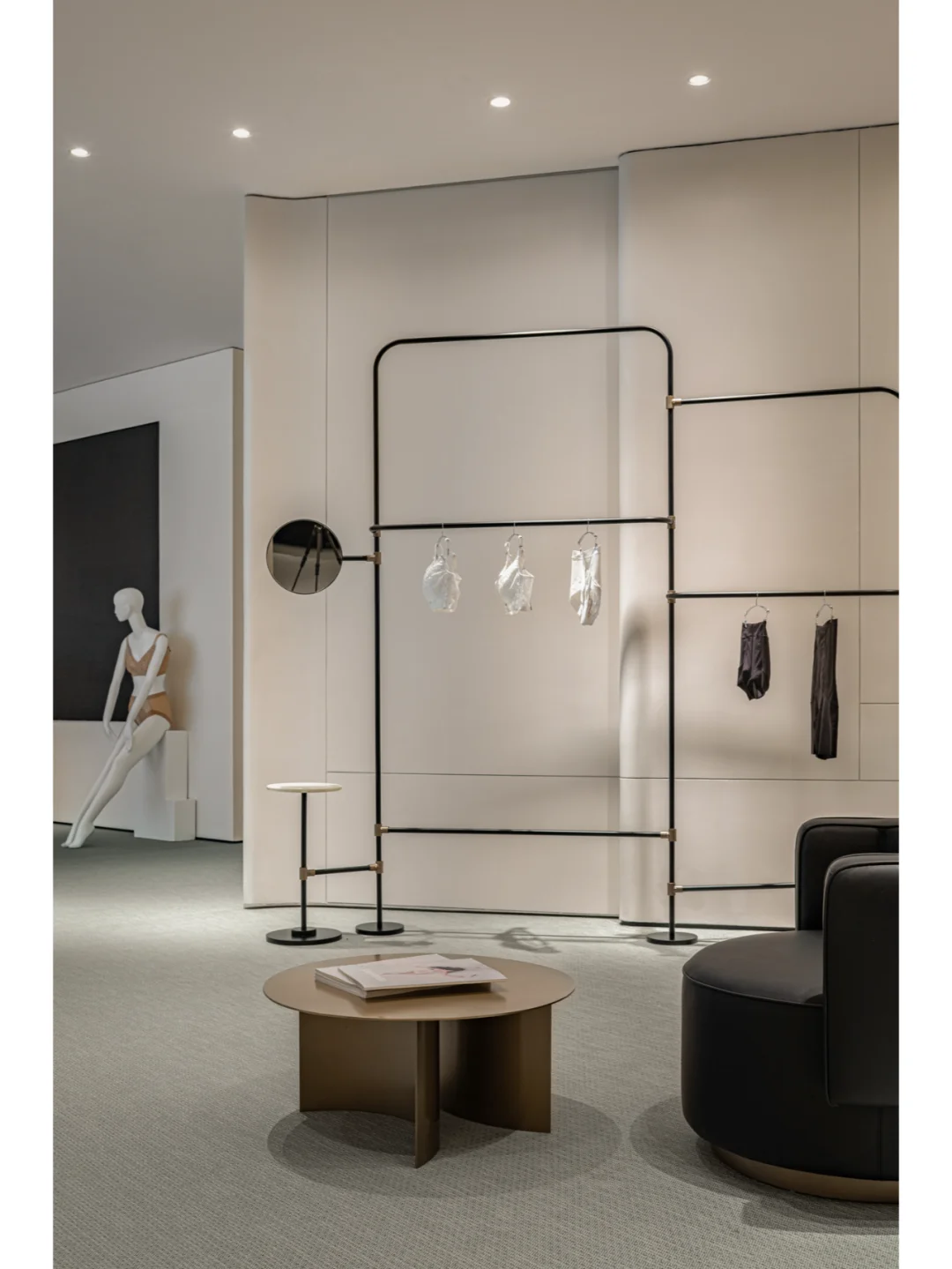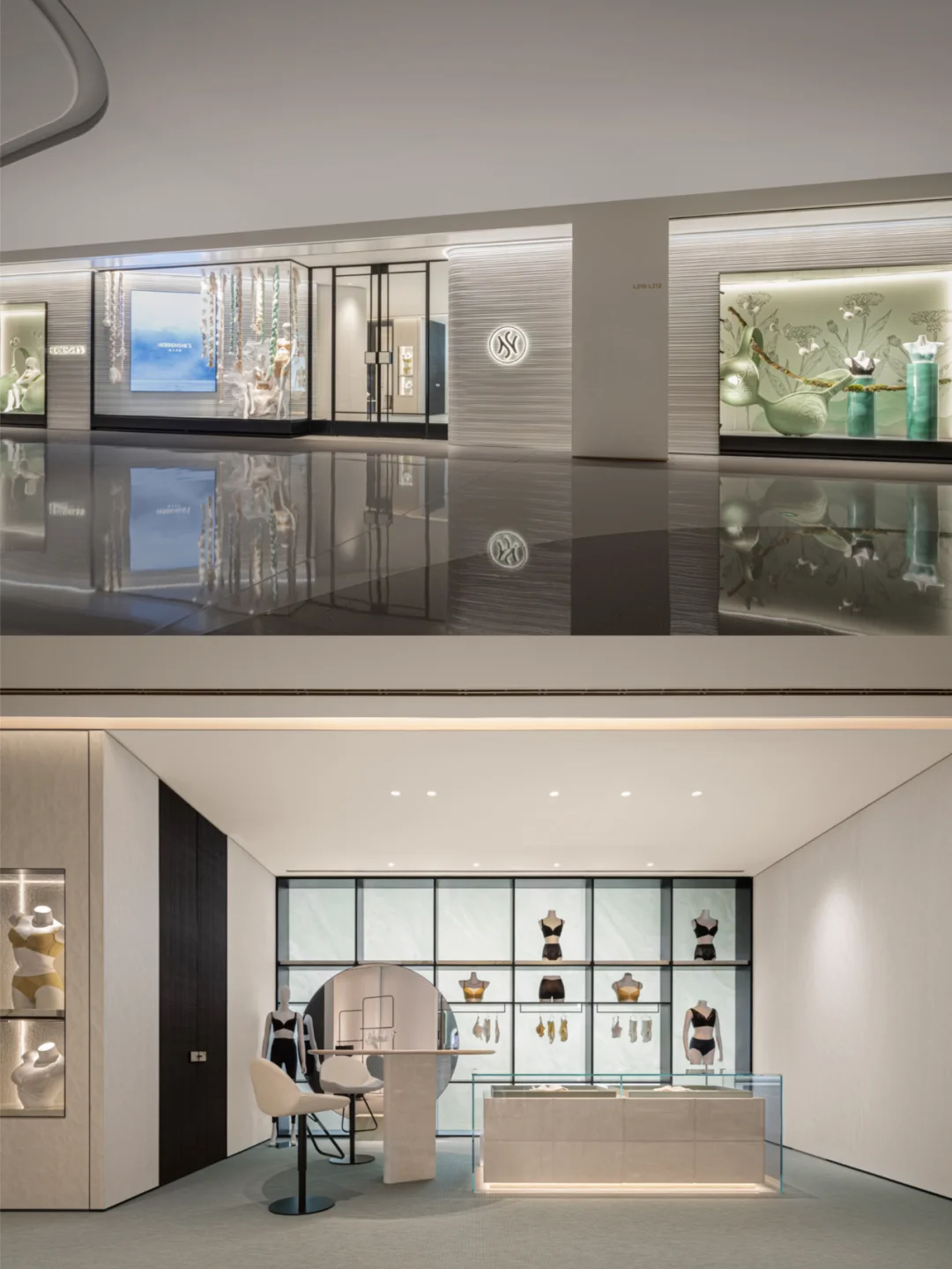 HERBENSHE'S 赫本西施新店位于深圳湾睿印RAIL IN,空间设计以“向美而生”为核,融合了奥黛丽·赫本的优雅精神、中国女性内衣的细腻力量与现代极简的设计手法,创造出一个既充满艺术感又富有人文关怀的空间。