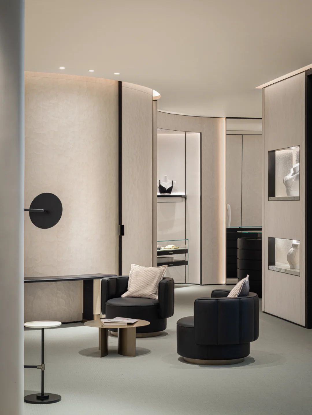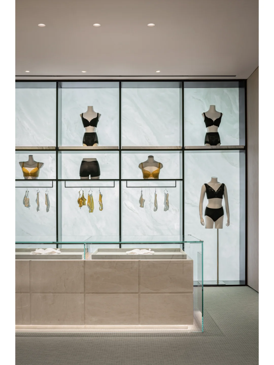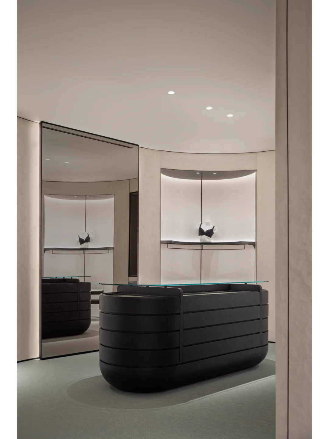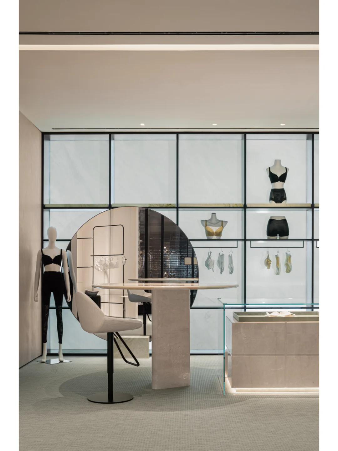 HERBENSHE'S 赫本西施新店位于深圳湾睿印RAIL IN,空间设计以“向美而生”为核,融合了奥黛丽·赫本的优雅精神、中国女性内衣的细腻力量与现代极简的设计手法,创造出一个既充满艺术感又富有人文关怀的空间。