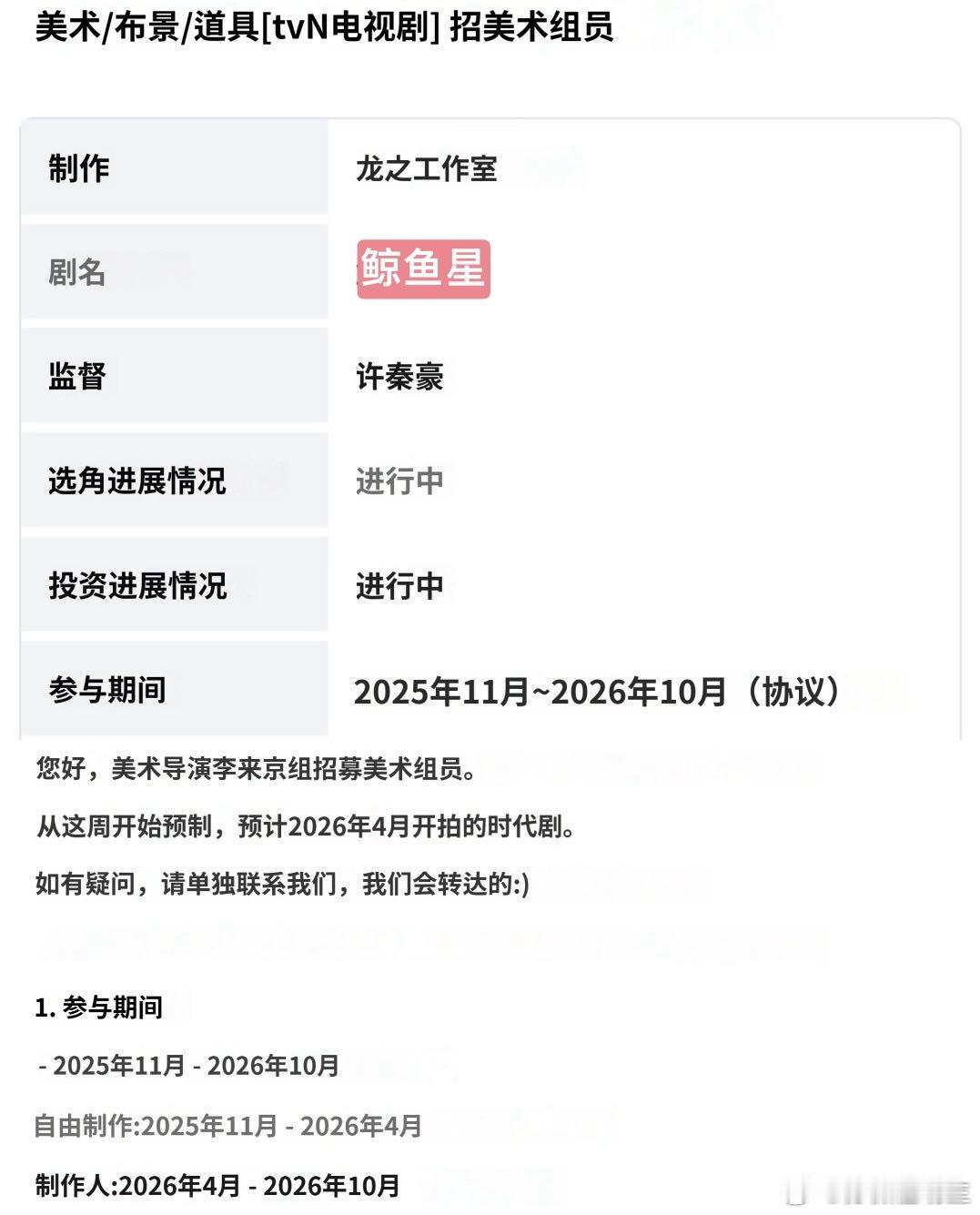 崔宇植文佳煐《鲸鱼星》最新消息~播出要遥遥无期了,计划26年4月开拍,10月拍完
