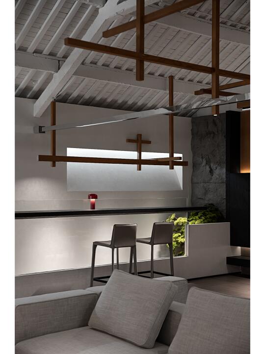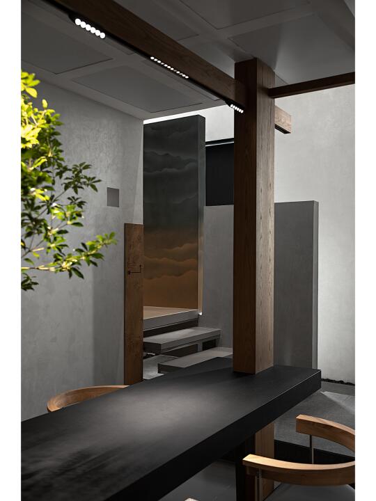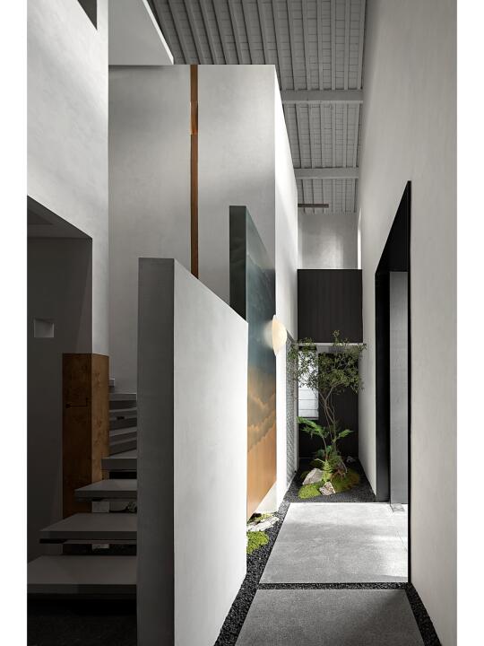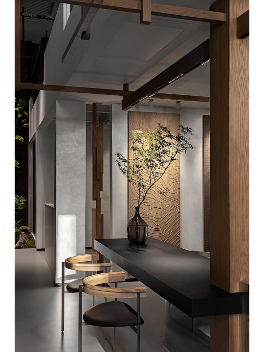 🟫 浙窑公园,前身为石祥船坞的工业遗存。绿竹荫荫、青瓦白墙的生活景观和毗邻京杭大运河的自然风情,孕育出浓郁的在地历史韵味,也造就了山笙全屋整装定制一案,一处融入江南水乡哲思的生活美学场所,一方内向型建筑形制的木作品牌展售新空间。 🟫 两层建筑空间被塑造为品牌材料具身应用的沉浸式定制体验。与以往传统材料展厅布局方式不同,设计以江南行商与住宅营建方式为参照,空间颠覆性地转置为「下店上宅」的先后序列。 🟫 利用适当的交替开口与露景表达,有限的、流动的场所解决了采光问题。不同角度切割产生的体块激起了奇妙的错位反应,无处不在的空间垂直关系平衡了界面的构图规律。 🟫 项目:山笙全屋定制展厅 公司:摄影:张家宁 空间设计 室内设计 设计案例分享 生活美学 商业空间设计 展厅设计 家居美学 江南水乡 门店设计 店铺设计