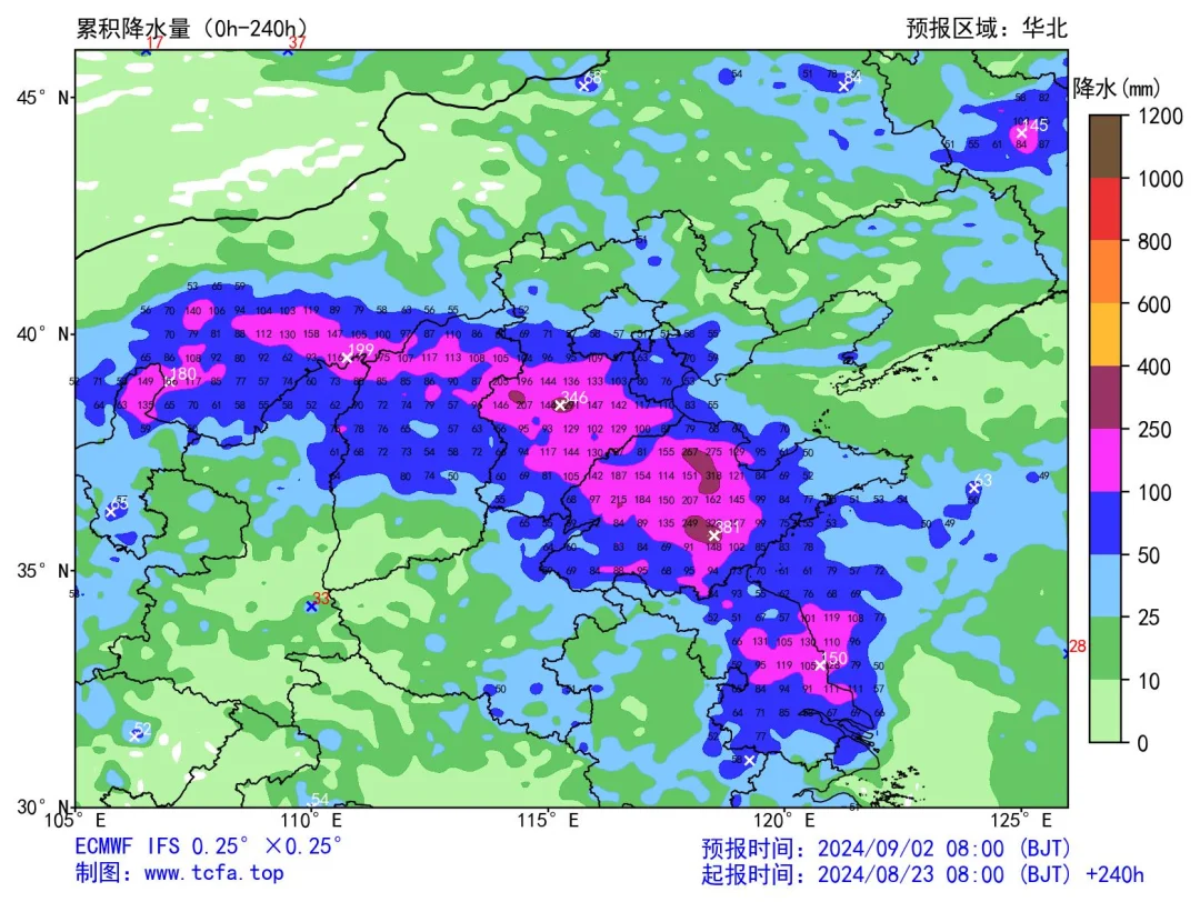 受西风槽冷空气和副高边缘湿润气流的共同影响,25日起北方多地将迎来一轮明显降雨天气过程。中央气象台官方预报指出,预计未来10天,北方地区多降雨天气,其中8月24日至27日,西北地区东部、内蒙古西南部、华北、黄淮自西向东先后有中到大雨。 甘肃中东部、宁夏中北部、内蒙古河套、陕西北部、山西中南部、河北西部、河南中西部等地部分地区有暴雨,局地大暴雨;上述地区累计降雨量有20~60毫米,局地80~150毫米,最大小时降雨量30~50毫米,局地60毫米以上。