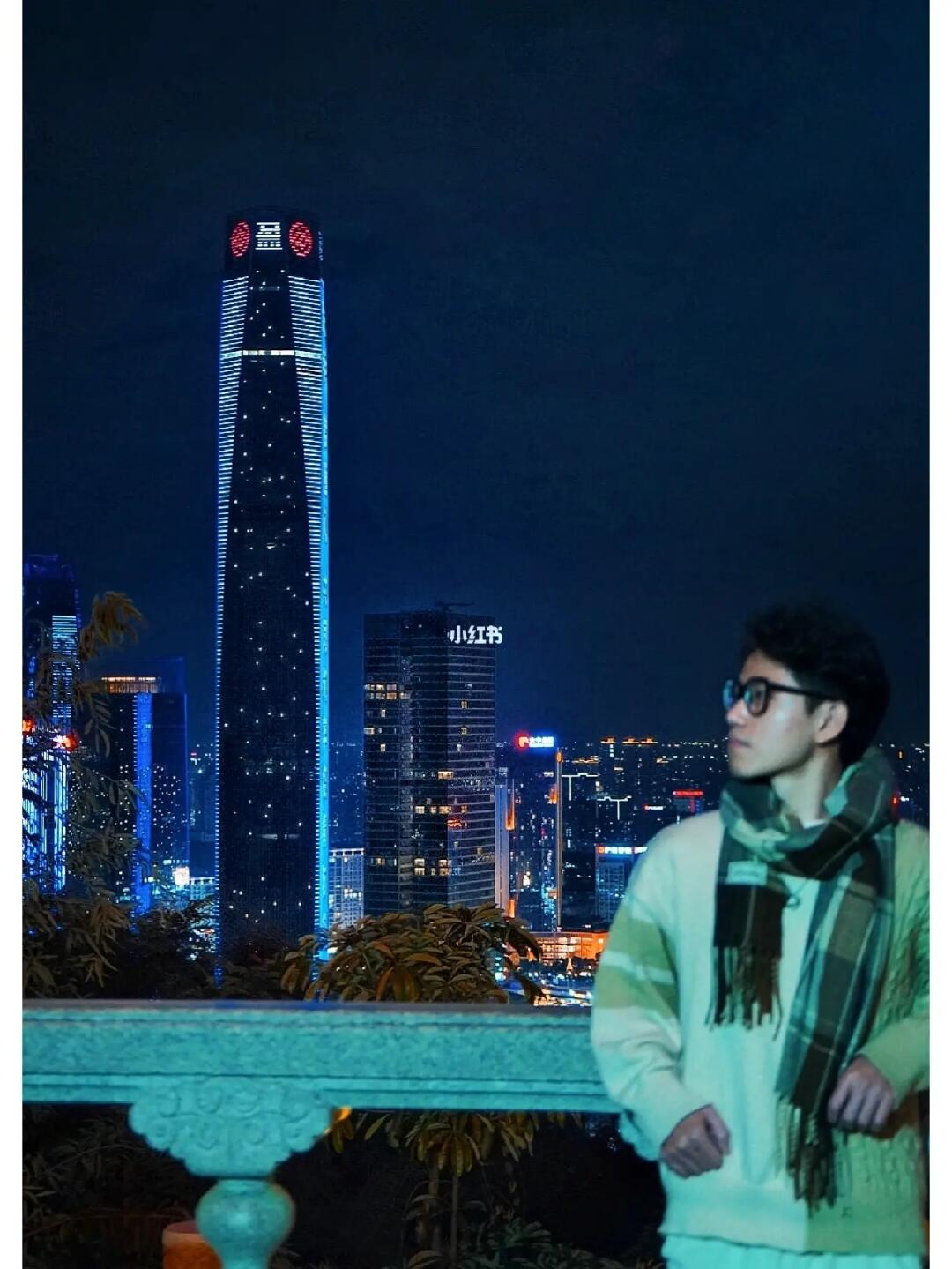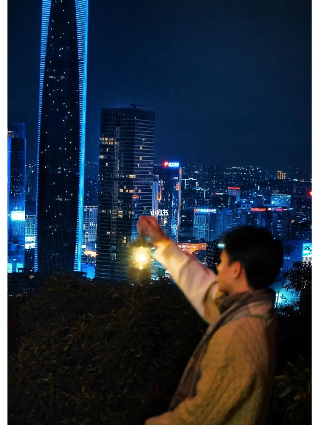 1⃣在山顶灯笼一层拍摄,人可以座在柱子上与城市合影。(要注意安全)