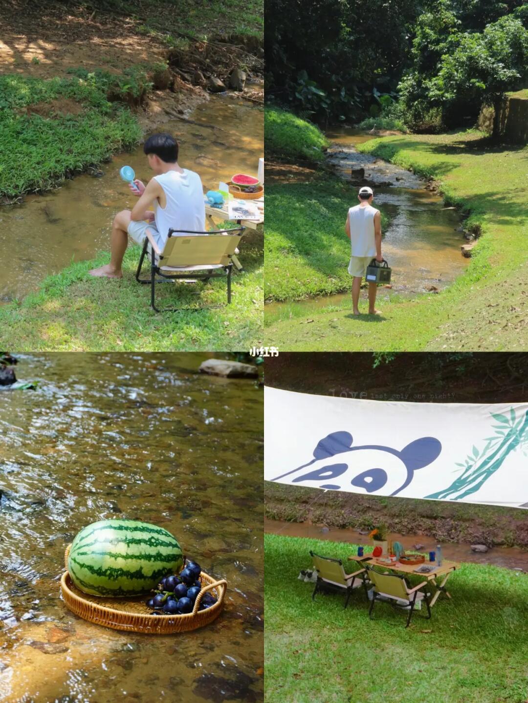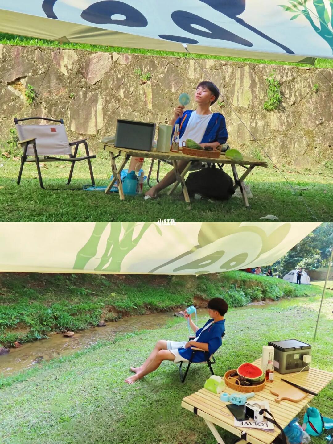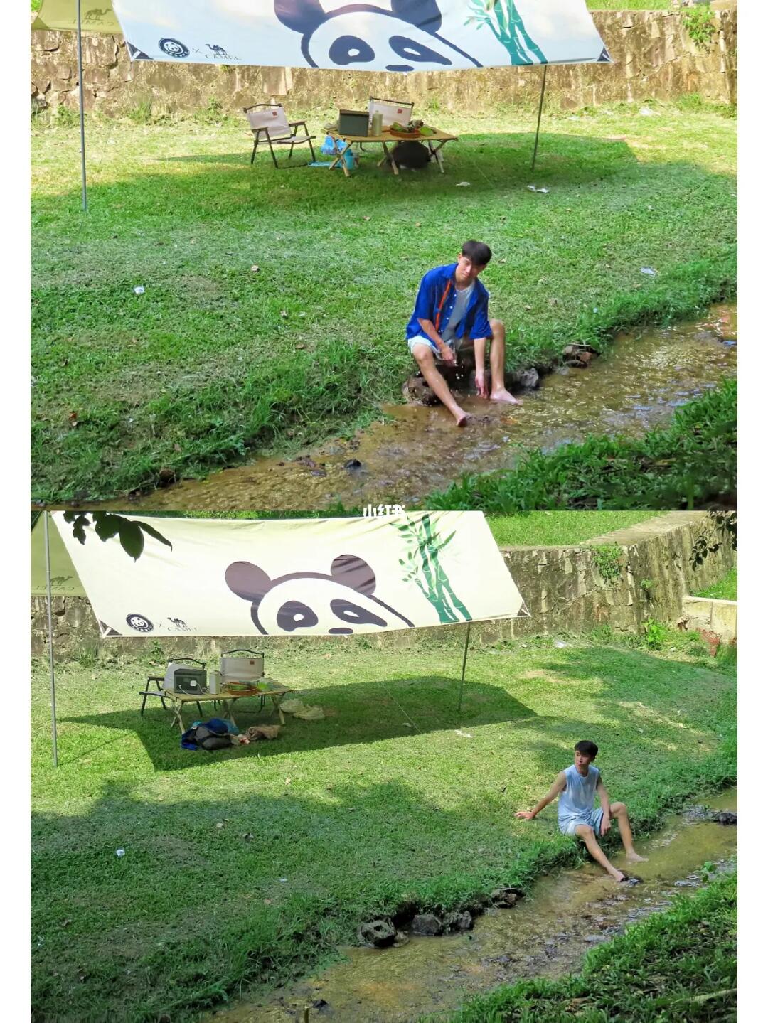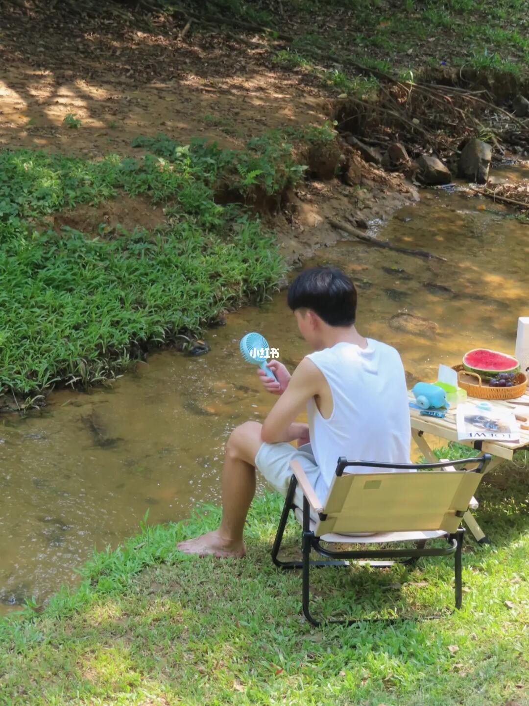 2⃣小溪下游一排的树,下午一点就开始遮阴。拿好露营凳在水里泡茶玩水,完全不热。