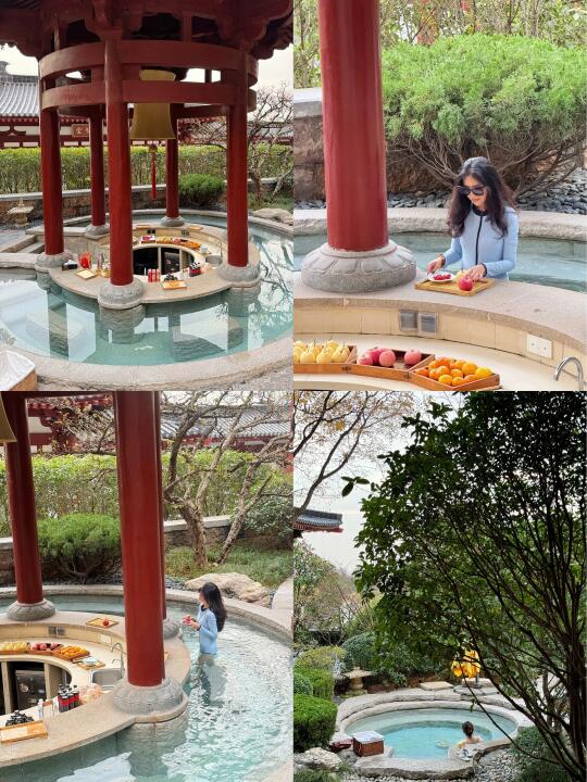 看完演出晚上直接住在西安华清御汤酒店,这里“一宫九苑”的设计真的很漂亮,还有“天下第一温泉”美誉,里面不同功能的泡池十几个。晚上看着点点星空,泡泡杨贵妃同款温泉♨️不仅全身都舒缓了,还促进血液循环,缓解疲劳,直接睡到第二天自然醒!