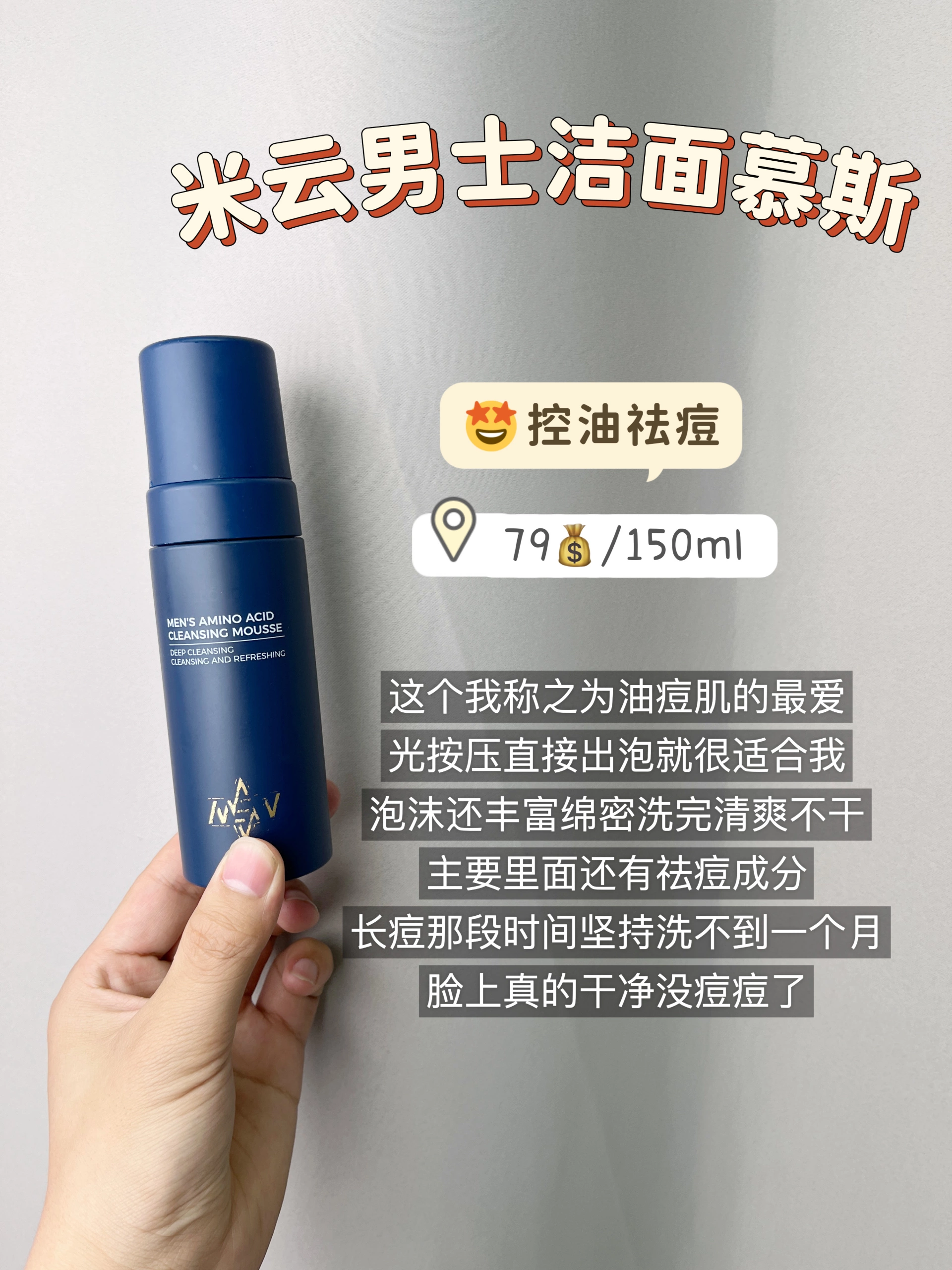 1.米云男士洁面慕斯这个洗面奶出油长痘的兄弟,可以直接冲了,我油痘肌天天洗,现在脸上清爽不油了,而且痘痘也没了
