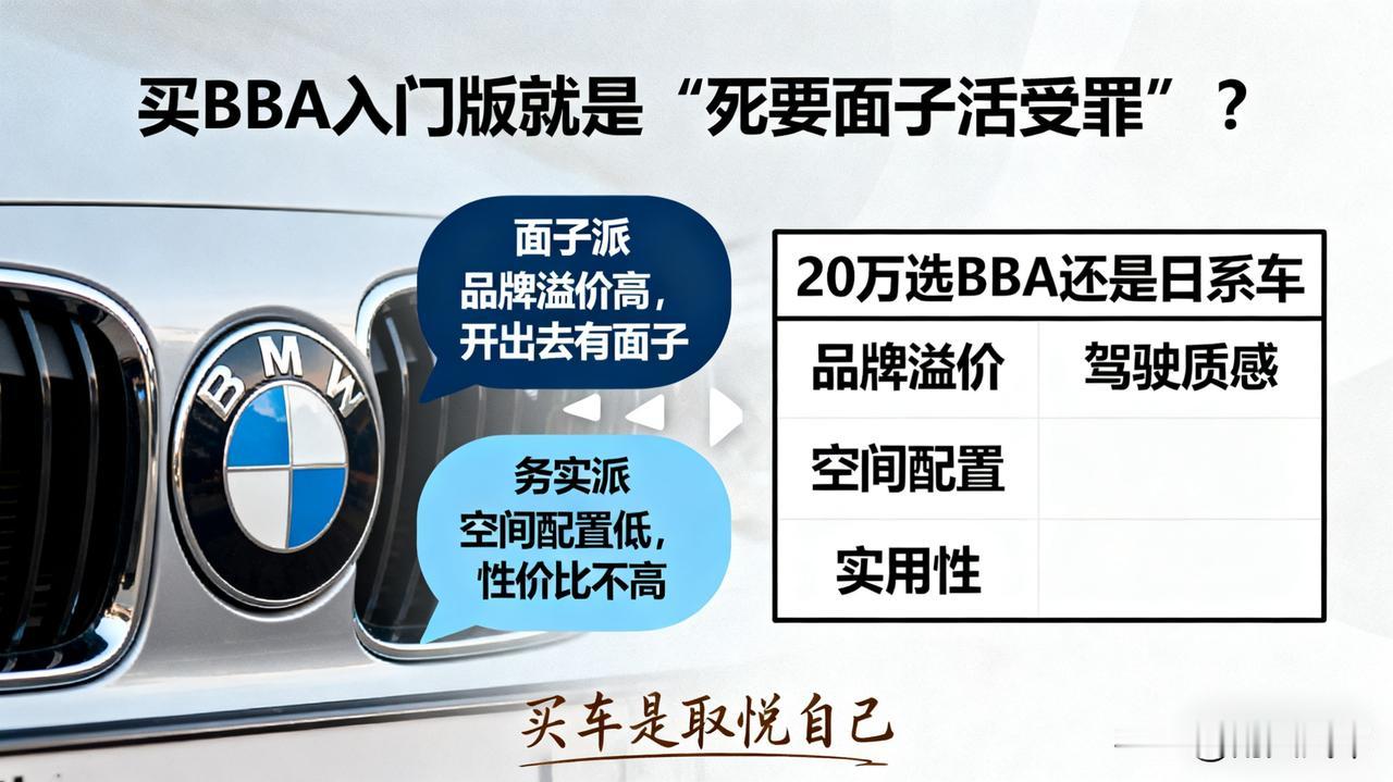 买BBA入门版(1系/A级/A3)就是“死要面子活受罪”? 总有人说,20万买台宝马1系三缸机,空间小配置低,不如买雅阁凯美瑞。但人家追求的就是个标,就是那个驾驶质感,不行吗?买车是取悦自己,不是取悦网友。 开入门BBA的车主,来说说你们的真实感受! 宝马3系 奔驰宝马3系 奔驰宝马bba 宝马3系mt款 宝马3系n20 奥迪A3 宝马3.0