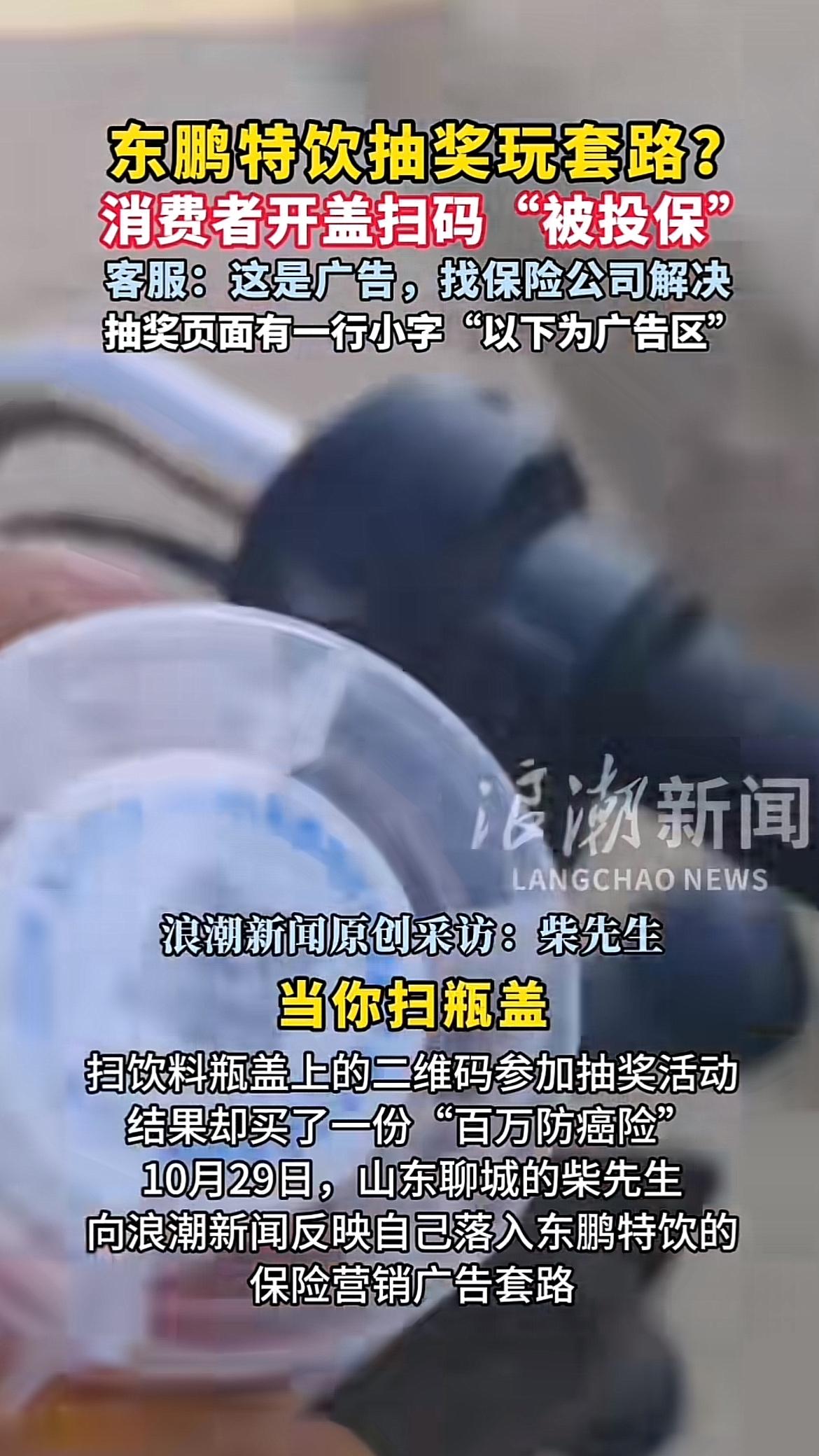 家人们,东鹏特饮抽奖可得留个心眼!之前有男子扫码抽奖结果被投保,客服还说这是广告,让找保险公司解决,简直离谱。 还有人在黑猫投诉东鹏特饮扫码中奖欺诈。3月27号买一瓶中奖2.5元,却要再买一瓶才能领奖。这人又买一瓶后,用第二个微信扫码显示无效,关键商家事先没说不能用第二个微信。找客服,客服还不理会。这明显是用虚假、欺诈套路让消费者多买。大家扫码时可千万别被忽悠,遇到问题及时维权,别让不良商家得逞。