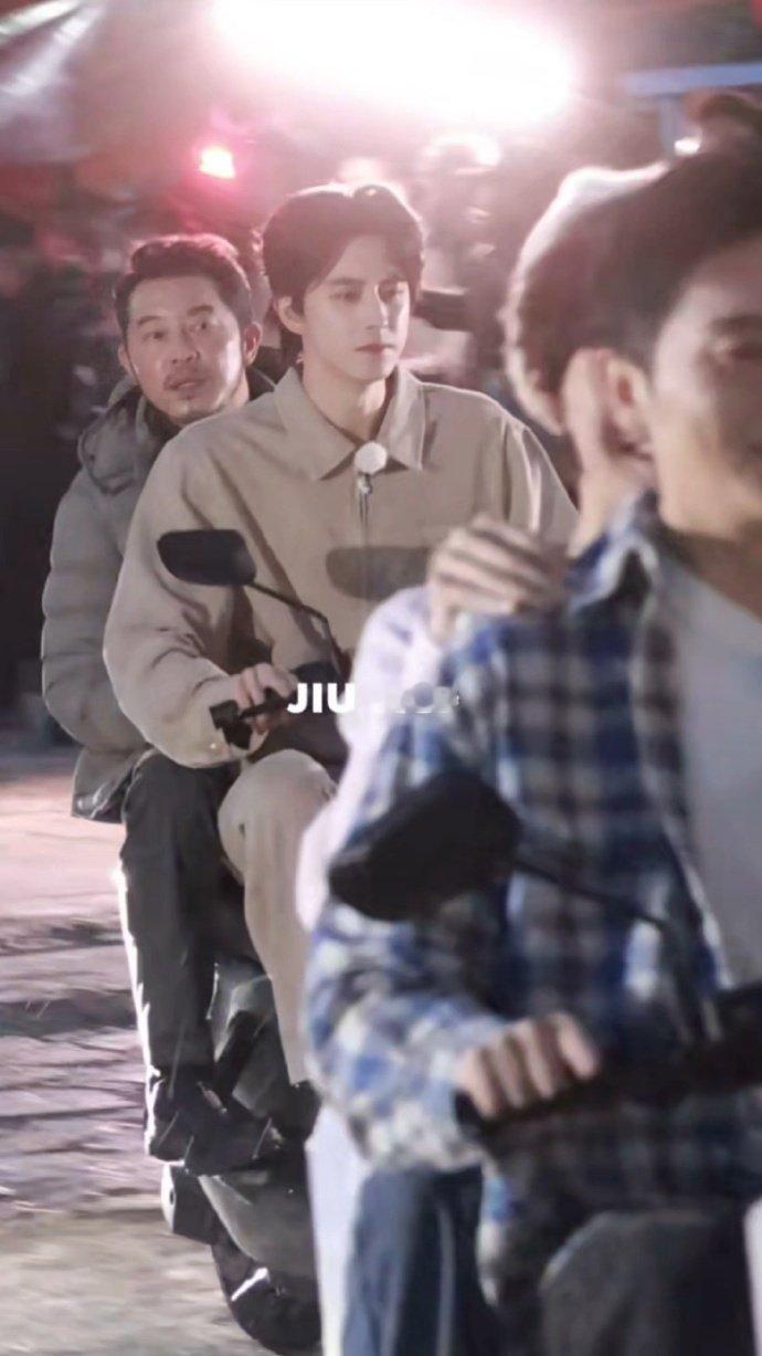 敖瑞鹏白到发光,敖瑞鹏骑电动车载沙溢,谁来懂这个一对比白白的敖子黑黑的沙爹,咱就说两位的极致肤色差来啦~