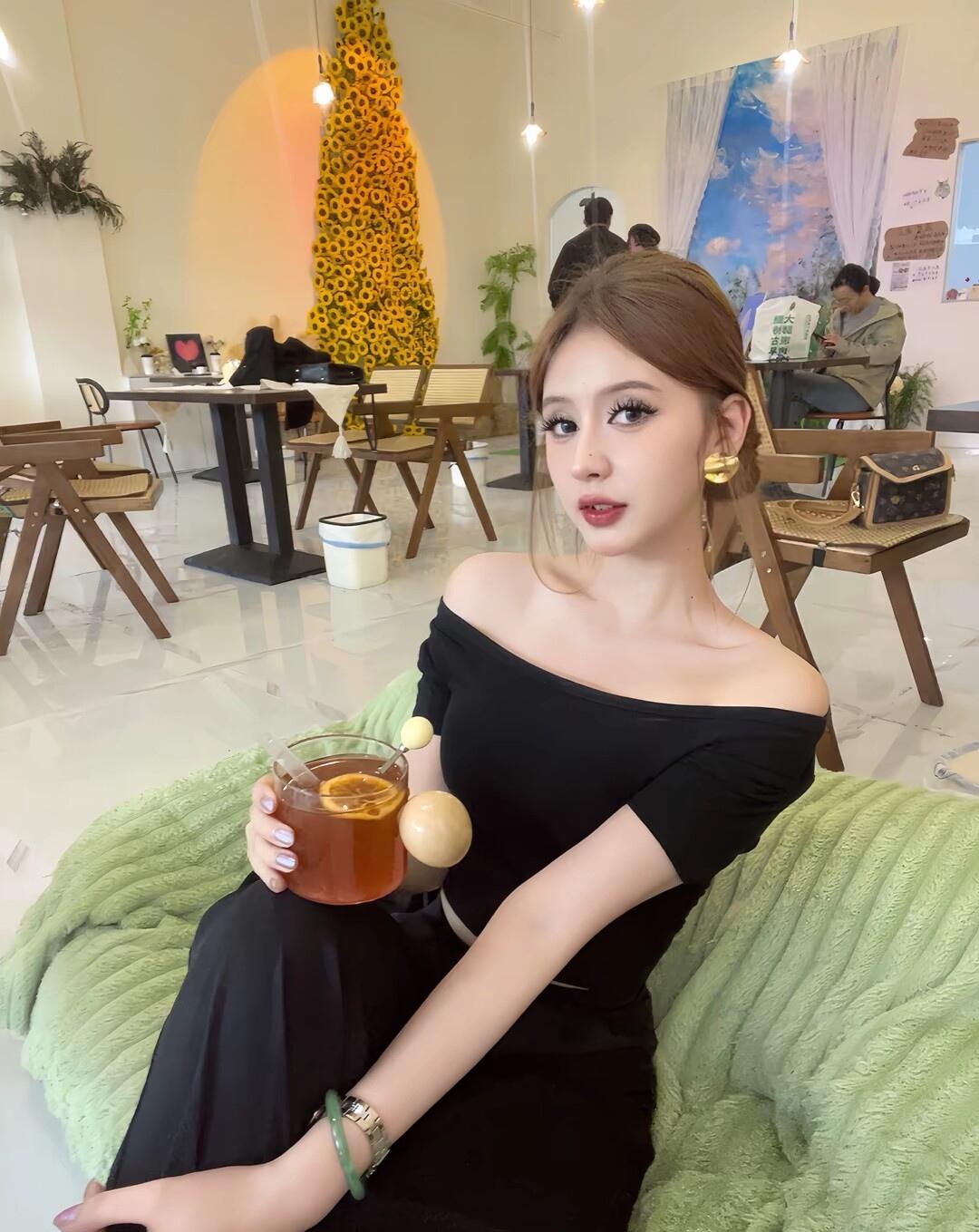 优雅黑裙,咖啡时光,享受宁静的午后。