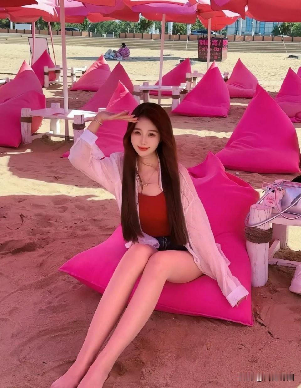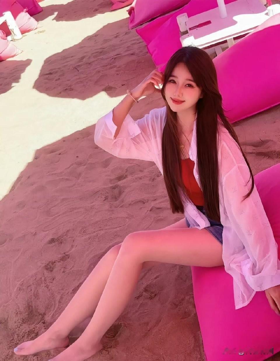 碧海潮生处,美人倚沙坐。