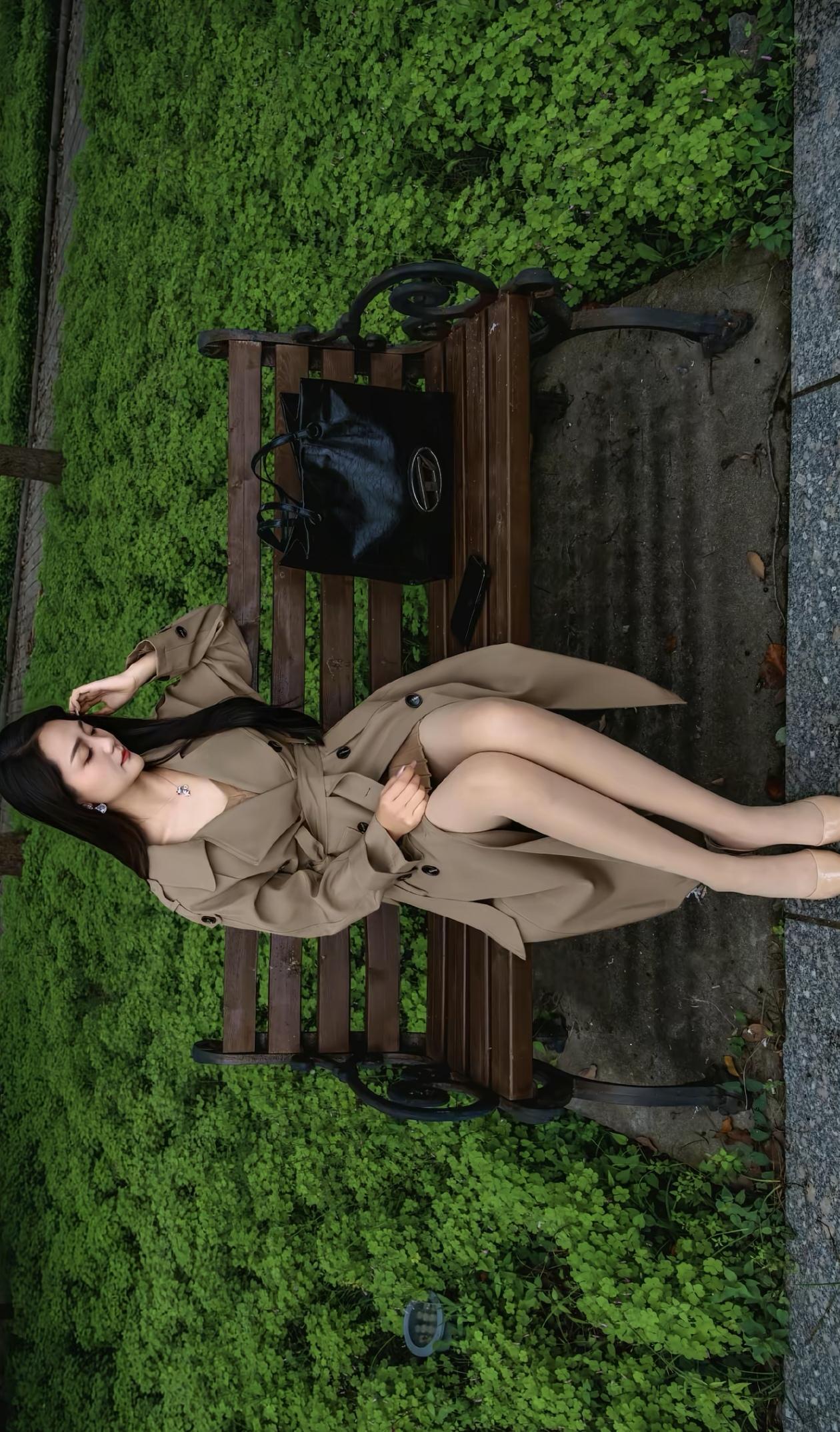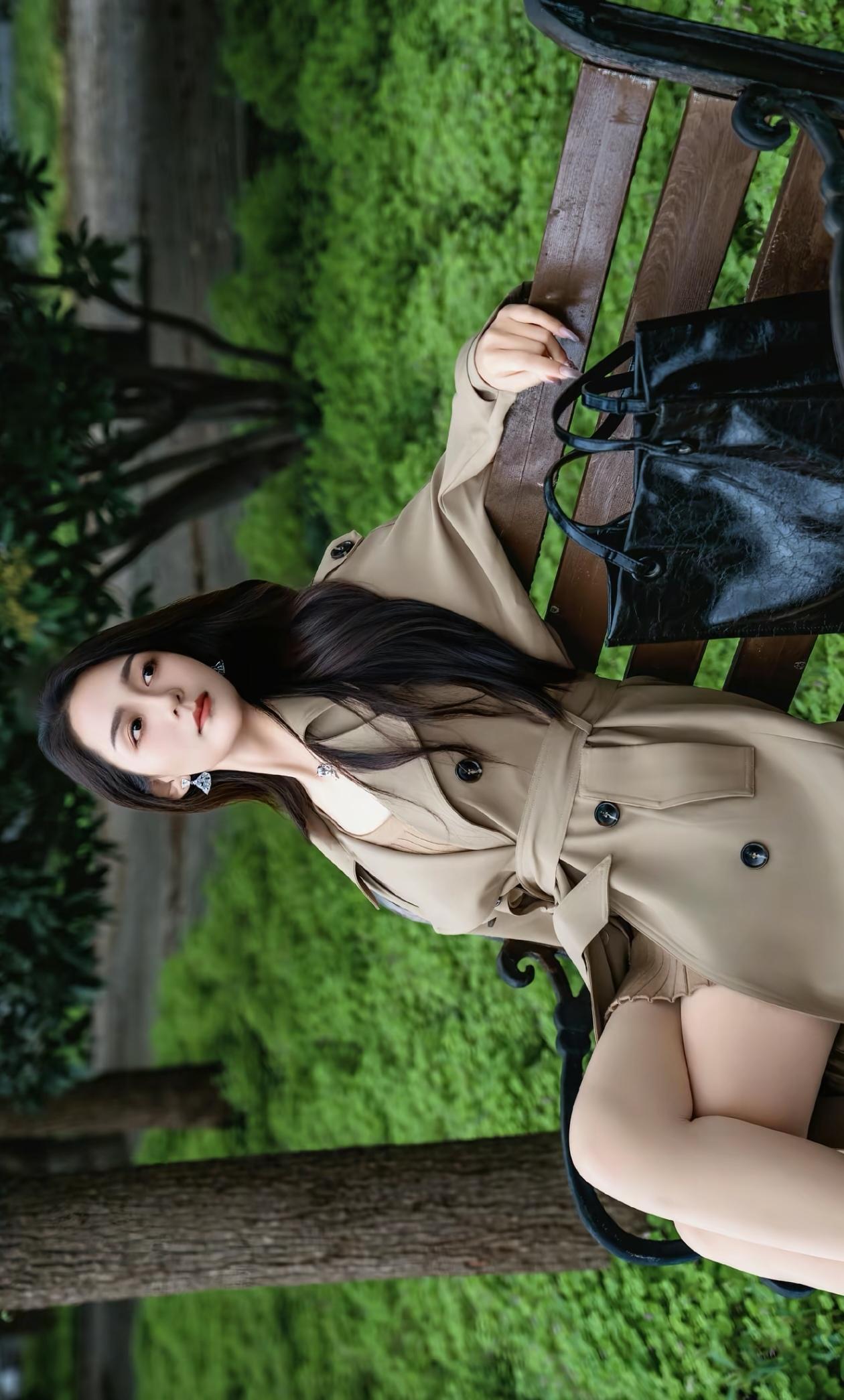 优雅漫步在绿意盎然的公园,享受宁静的午后时光。