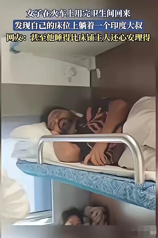 10月29日,一女乘客从广西乘列车去上海,中途去了趟卫生间,回来卧铺居然被一名印度男子霸占,对方还睡得正香! 语言不通加上不想多事,女乘客没叫醒他,觉得别人躺过的床也没法睡了,拍视频记录下这事,没想到反倒遭了网友攻击,说她搞国家对立、男女对立,更吐槽她不该纵容这种行为。12306也明确回应,遇到这种事不用妥协,直接找乘警就行! 前几天才刚有印度游客在地铁吃手抓饭的热议,现在又出现霸占卧铺的事,确实让人忍不住吐槽素质问题,但核心根本不是国籍或性别,而是“规矩”二字!出门在外谁都有自己的权益边界,纵容不是包容,反而会让不守规矩的人得寸进尺。 维护自己的合法权益从来都不叫“小题大做”,反而能让规则被更多人重视。要是你遇到这种霸占座位或卧铺的情况,会直接找工作人员处理,还是选择忍一忍?