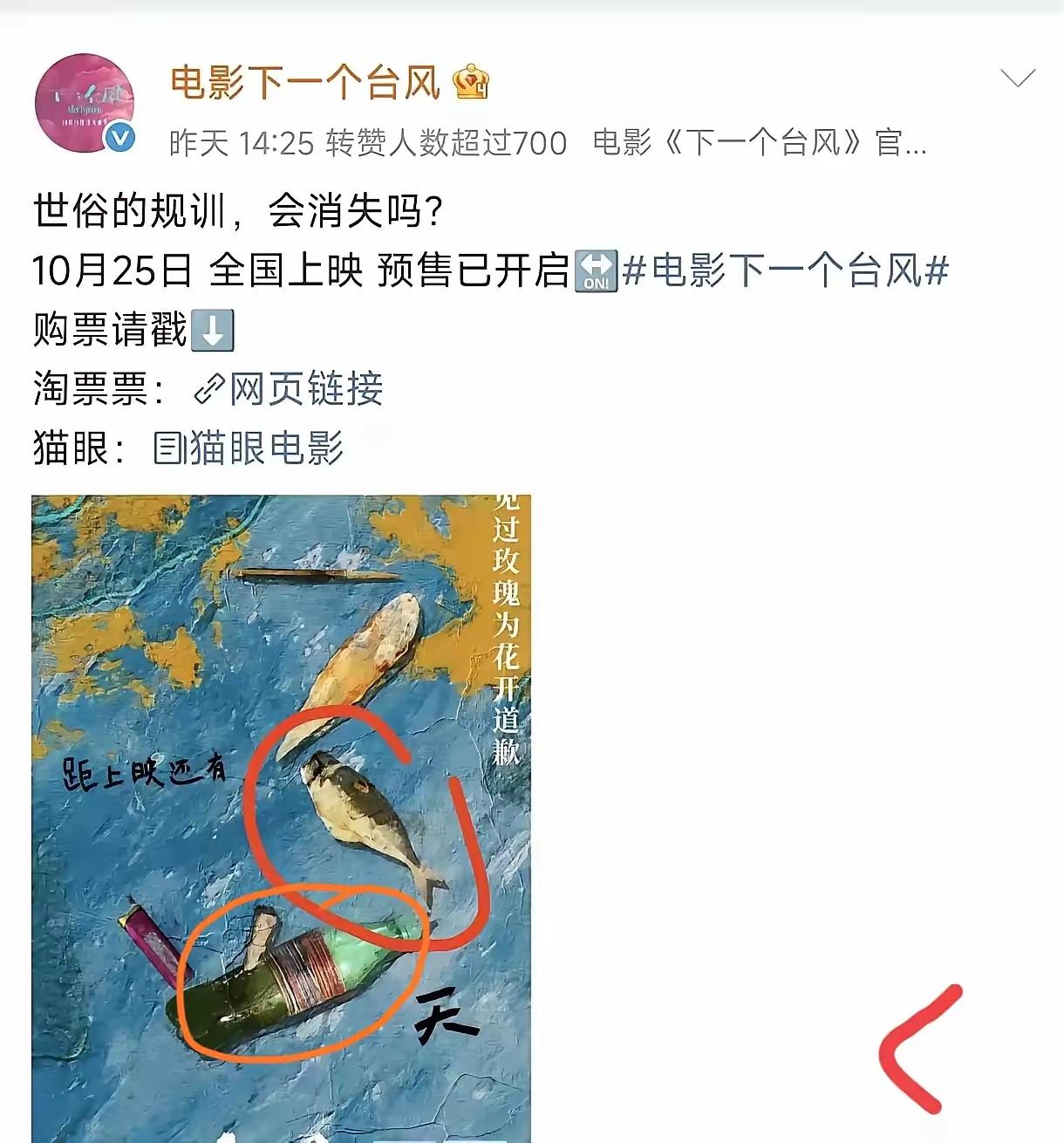 方励的《下一个台风》预告海报邪恶坐实,完全是赤裸裸的挑衅啊啊啊啊啊啊!(左图)被肢解被吃部分的鱼🐟…(右图)“瓶子”被基佬群魔们摧残…[伤心]群魔当千刀万剐! 这种对海报的恶意解读,其实早偏离了作品本身。要知道这部电影讲的是反网暴故事,监制方励自己都深陷无端谣言,警方多次通报其无辜仍被攻击。所谓“邪恶元素”,更可能是网友带着偏见的过度解读。 更值得警惕的是这种“扣帽子”式批判,仅凭主观臆断就给作品贴“邪恶”标签,甚至用侮辱性词汇攻击,这恰恰是电影要反对的网暴行为。片方明明顶着压力坚持公映,就是想传递反抗恶意的力量,却被歪解成“挑衅”。 看待文艺作品,最该丢掉的就是先入为主的偏见。连内容都没了解,就靠脑补批判,和键盘施暴者有何区别?你觉得该如何避免被片面解读带偏节奏?