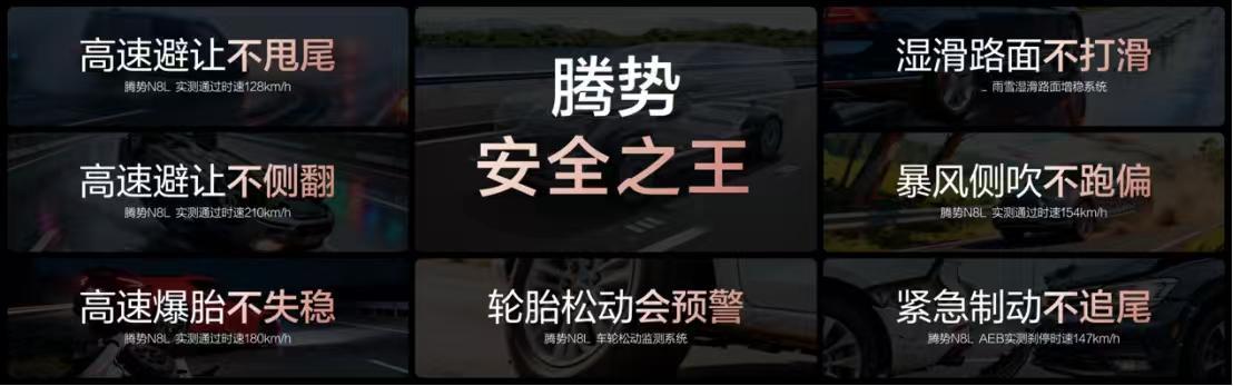 很多人买腾势N8L就是看中“易三方”。零百3秒9,转弯半径4米58堪比小车灵活,窄路调头简直是从从容容、游刃有余啊!面对高速爆胎避让这些紧急场景都很稳,甚至147km/h的速度下AEB也能刹停。云辇-A,双腔空悬带预瞄;天神之眼B辅助驾驶,智能泊车兜底。采用2000MPa热成型钢,还标配9气囊和刀片电池。