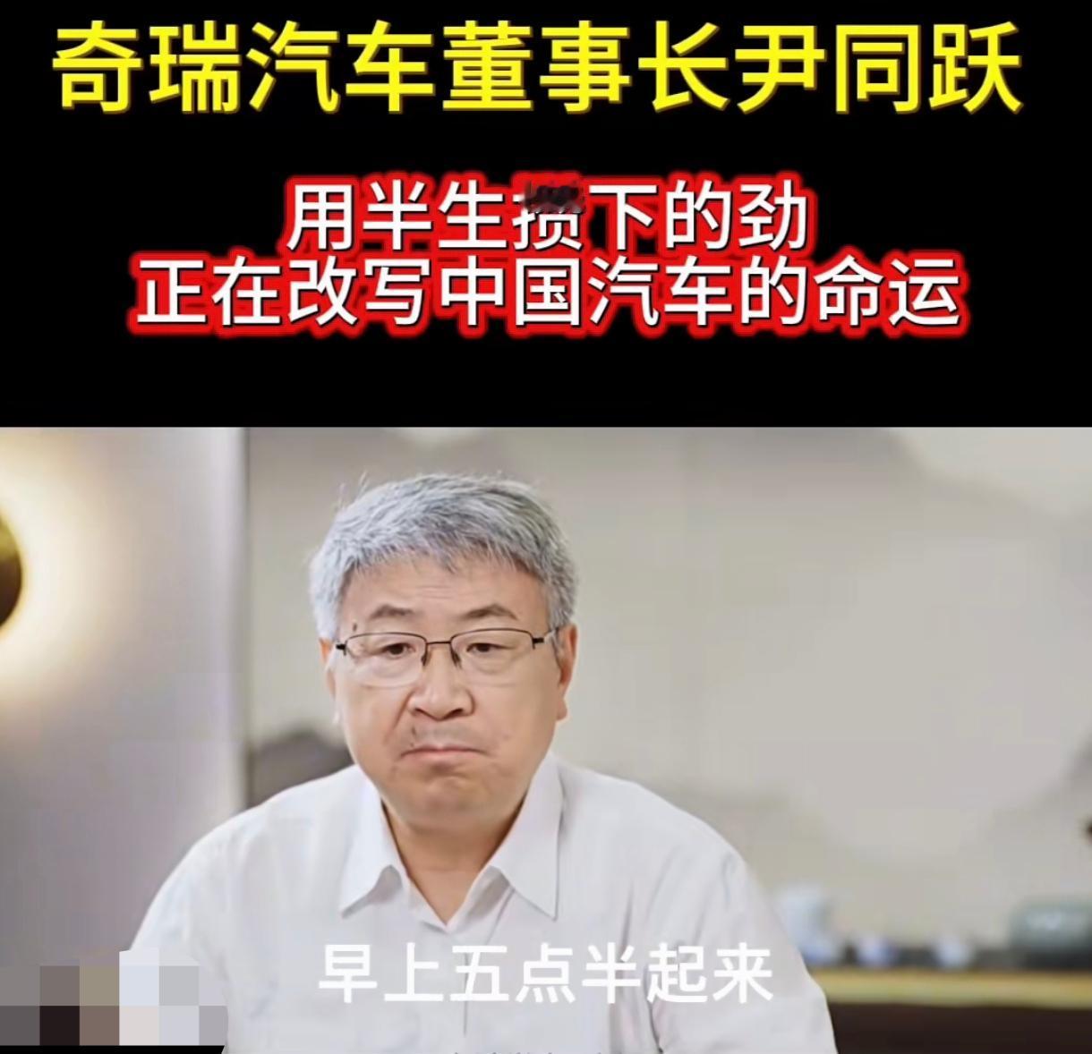 我发现奇瑞老总尹同跃工作起来真的是拼命。二十多年来他都是雷打不动早上5点半起床,锻炼身体30分钟,洗漱完毕,7点到公司,开始边吃早餐,边给公司高管开会,俗称开早餐会。然后8点半正式进办公室开始工作,除了吃饭,上厕所和午休一会儿,以及其他临时性工作安排,会一直工作到凌晨12点。我在佩服尹总工作努力的同时,我也有点同情在尹总身边工作的员工了。因为我在工厂工作20多年了,这种滋味深有体会。尹总作为老板,他的工作内容是以决策为主,身边的高管、员工、助理才是工作执行者。 所以只要尹总忙碌起来,那他身边的员工就更加忙碌,更加的累。 因为很多工作并不是一成不变,有计划性的,中间会有很多随机变化的工作内容。比如尹总突然想到了一个事情要去紧急处理,张口就安排给身边的员工了,那身边的这个员工工作起来有可能跑断腿。 像尹总这样的老板,已经很难区分工作和休息时间了,他在休息的时候突然想到了某件工作要做,就安排给下面的员工,那这就是他在工作。同样,他在工作中有点累了,小憩的时候别人也不可能敢打扰。