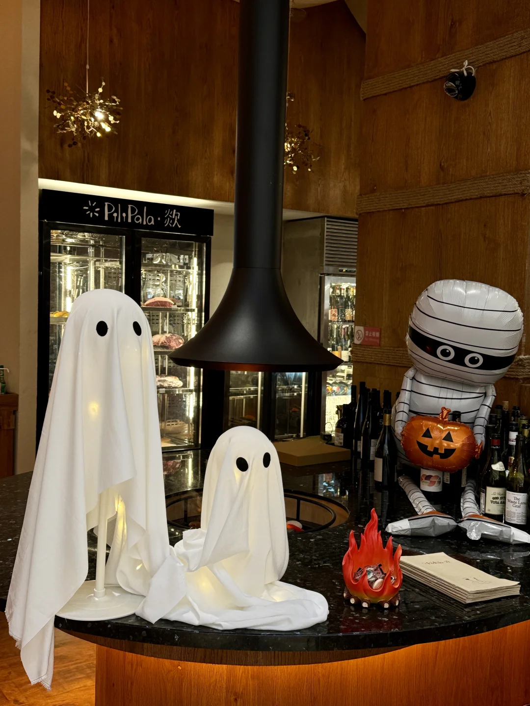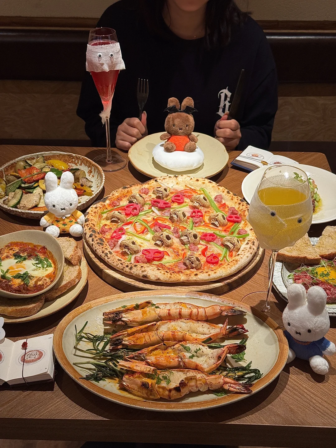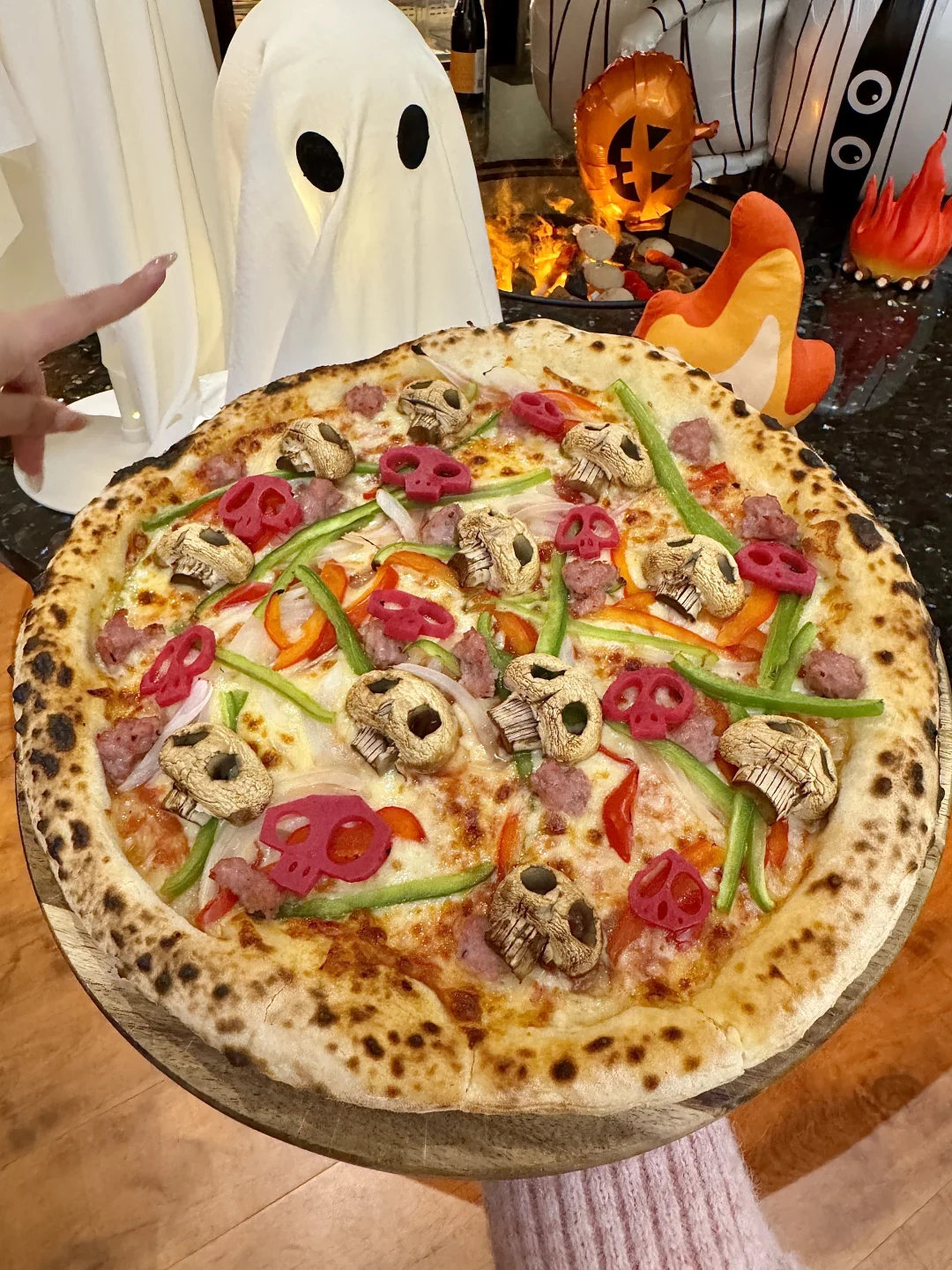 上海果然是大城市。。。连万圣节都好有意思啊!!! 万圣节骷髅披萨🍕幽灵拿铁👻真的好喜欢!!!! 直火炭烤时蔬🥬烟熏蛋黄和牛塔塔🌮辣味北非蛋🍳一饭封神同款炭火炒饭🔥炭烤黑虎虾🦐都很不错