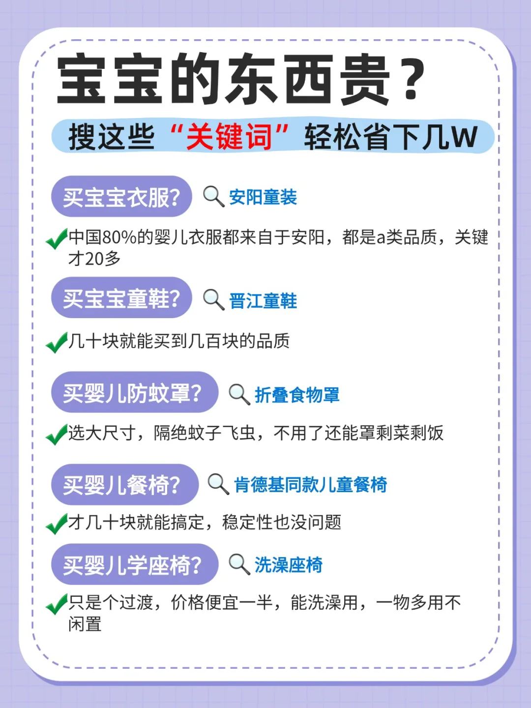 宝宝用品实在太贵?换这些关键词看看!同样的品质,便宜一半的价格,新手爸妈赶紧🐎住!在保证质量和安全的基础上,咱们该省省该花花!