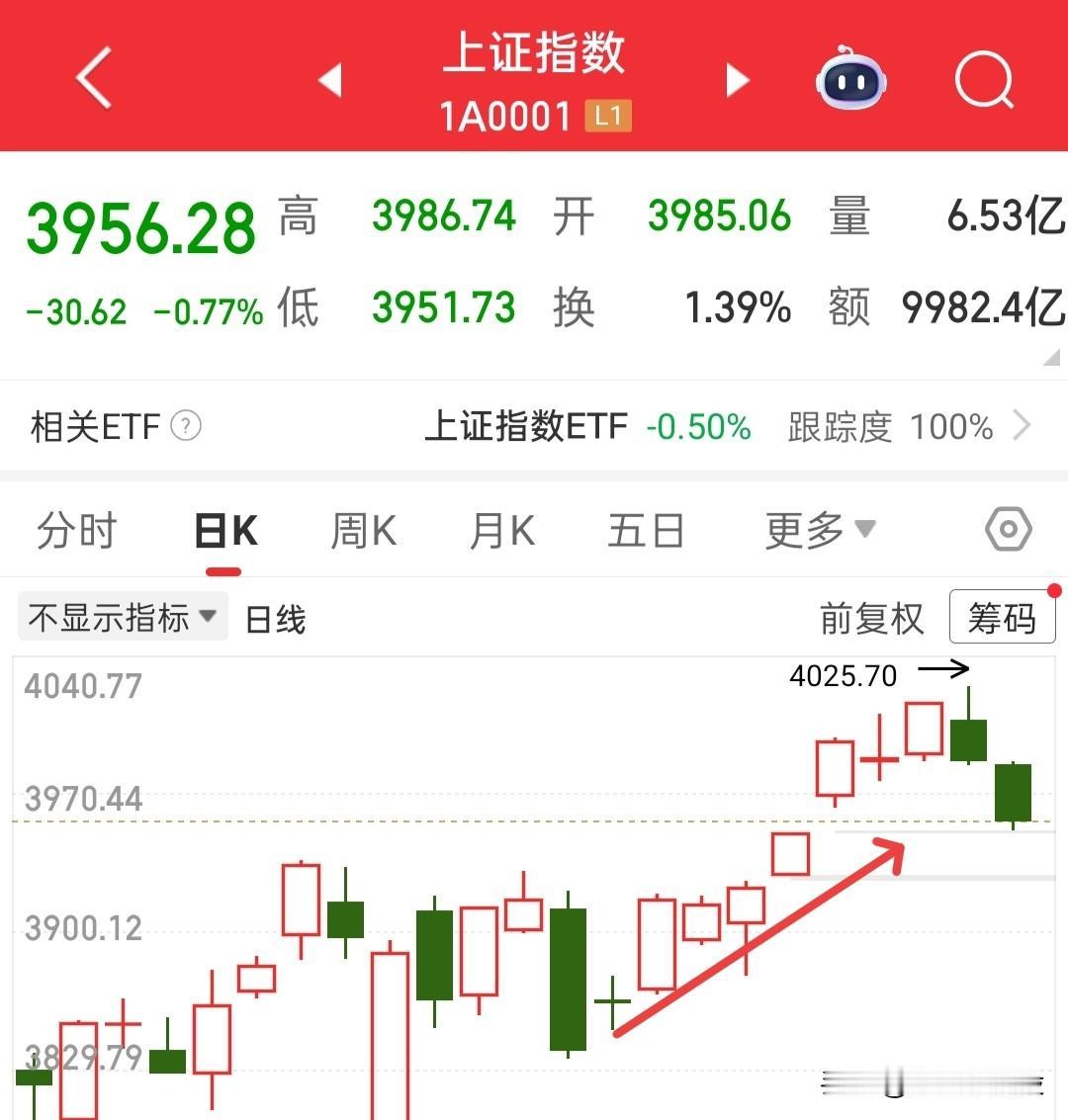 快收盘了,停服务区简单更新下吧! 看大盘,今天下方还留有一丝丝缺口,今天为啥不补掉,这个不得而知,也许因为这个缺口有特殊的意义! 那么作为短线来说,今天仓位也要留在3-4成左右,因为形态还没有走坏,那么大盘的支撑就是今天的最低点3951.73点,如果下周一不破掉这里,那么这个缺口就是短期支撑,这里应该还要反弹! 注意今天要把大涨的板块或者个股调一调,往形态好的,但是今天涨幅小的,而且形态很漂亮的那样的!