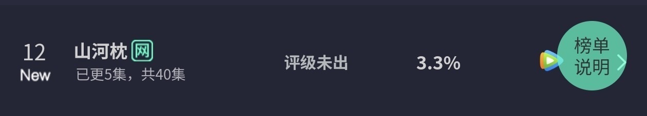 丁禹兮、宋茜主演的《山河枕》云合首日3.3%