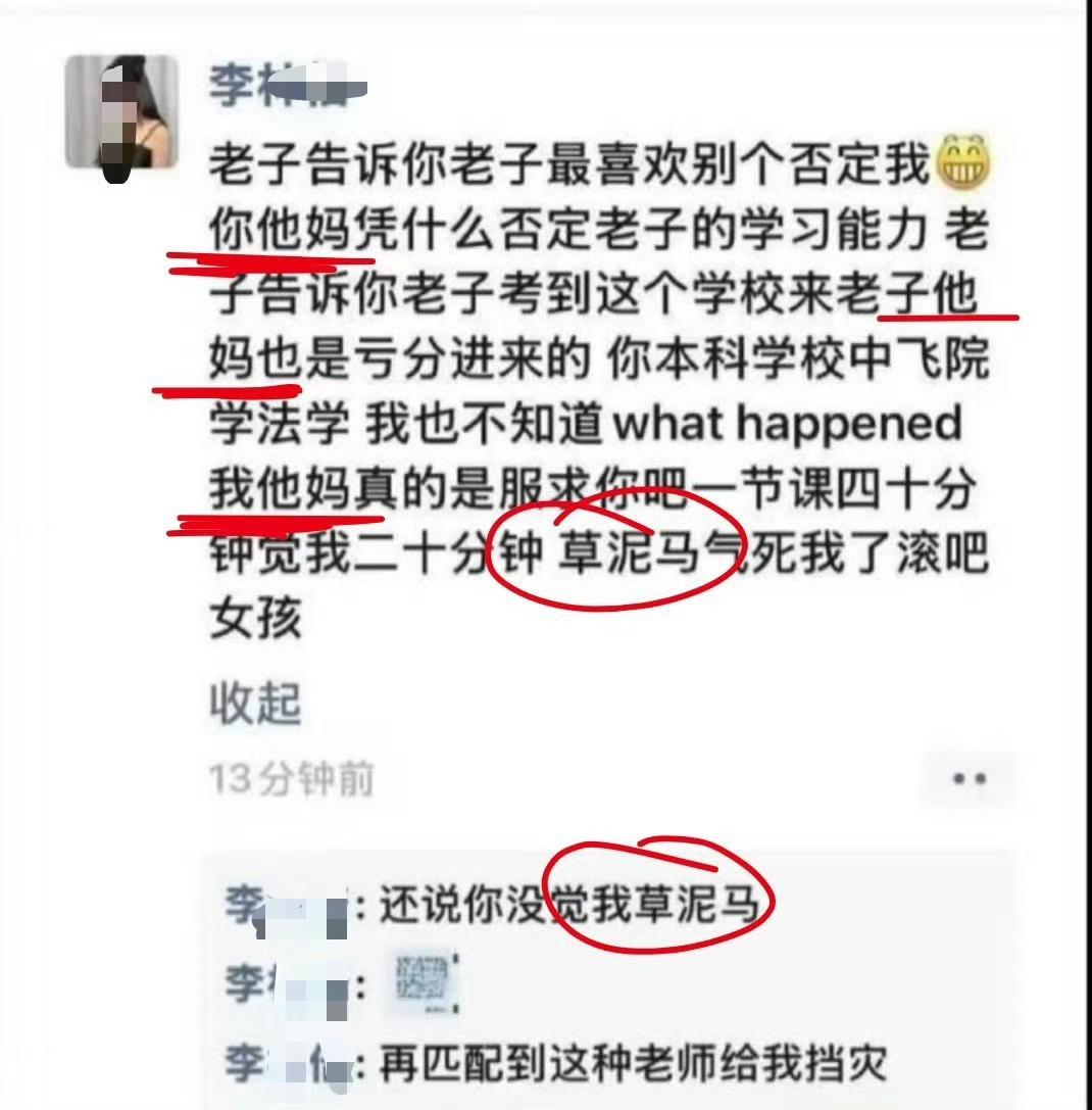 重庆工商大学涉事学生道歉。 她不是知道自己错了,她是知道自己惹上麻烦了,她是因恐惧而后悔,如果轻轻松松放过她,下次她还敢,甚至还更嚣张。 你看她通篇的所谓“道歉”,没有一点点诚恳的地方,还是试图蒙混过关,甚至还在表达一种“老师小题大做”、“我就算夸大其词了,你又有什么伤害”? 真不知道这个女学生怎么考上大学的,通篇文字不通,连标点符号都不知道加,阅读起来都觉得费劲。