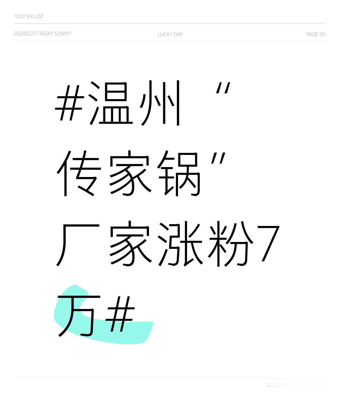 温州“传家锅”厂家涨粉7万 温州“传家锅”厂家一下涨粉7万,这操作太牛了!它火起来有门道。一方面,它找准大众需求,知道大家想要耐用实惠的锅,就使劲宣传自家锅的品质和实用性,就像卖菜摊主吆喝菜新鲜实惠,大家自然被吸引。另一方面,它超会互动,在评论区跟粉丝打得火热,粉丝问用法秒回,分享故事还点赞,接地气得很。 老板面对爆火很冷静,要重点抓质量。咱普通人或小商家能学不少,得把卖点说明白,多和顾客互动,还得有坚持的劲儿,不能三天打鱼两天晒网。