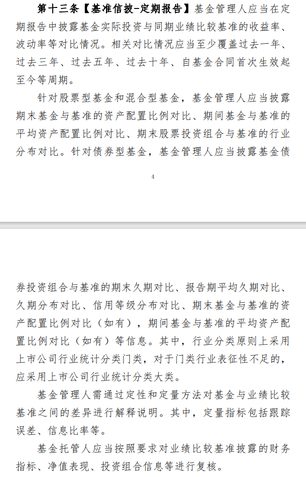 有两个影响,一个是买股票基金的时候,可能会避免买到那些挂羊头的基金。二是业绩基准里面需要明确产品的久期,就可以方便买到适合自己需求的债基了。