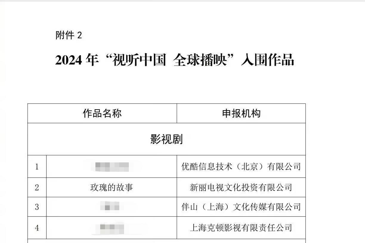 刘亦菲主演的《玫瑰的故事》入围2024年“视听中国 全球播映”优秀作品!