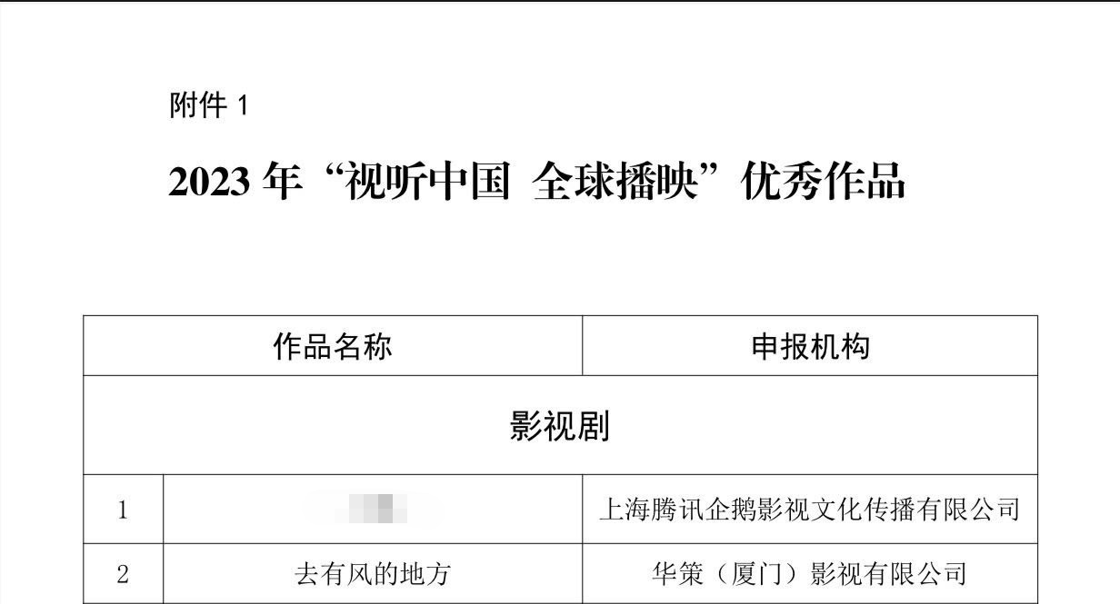 另外,《去有风的地方》入选2023年“视听中国 全球播映”优秀作品!