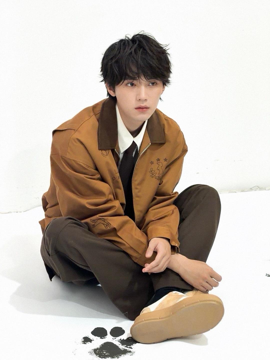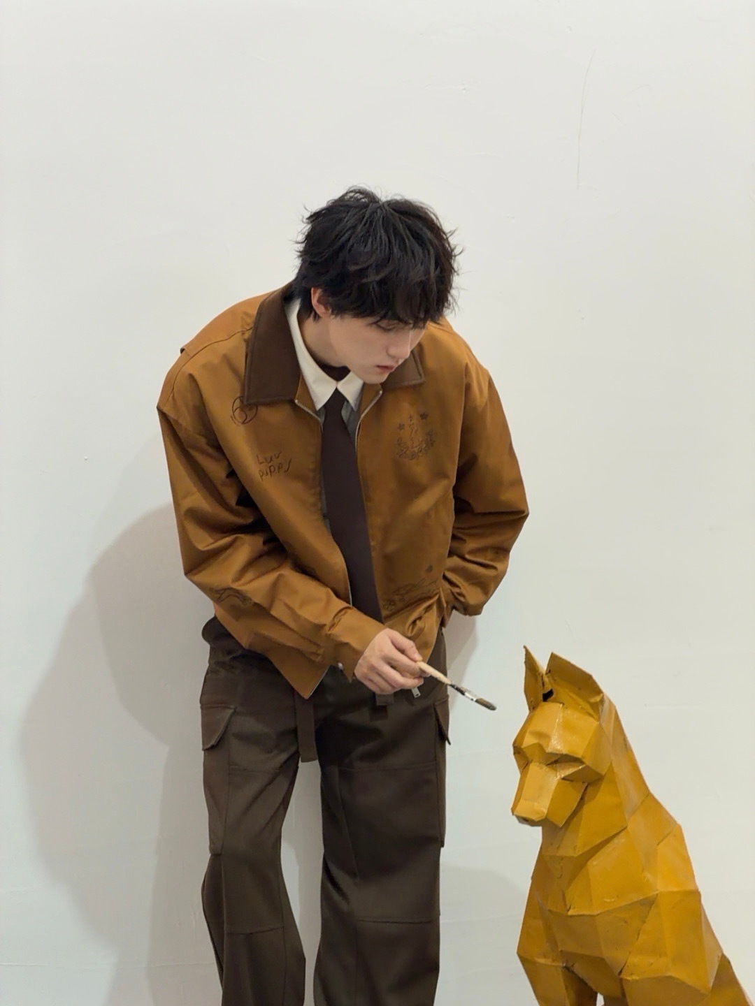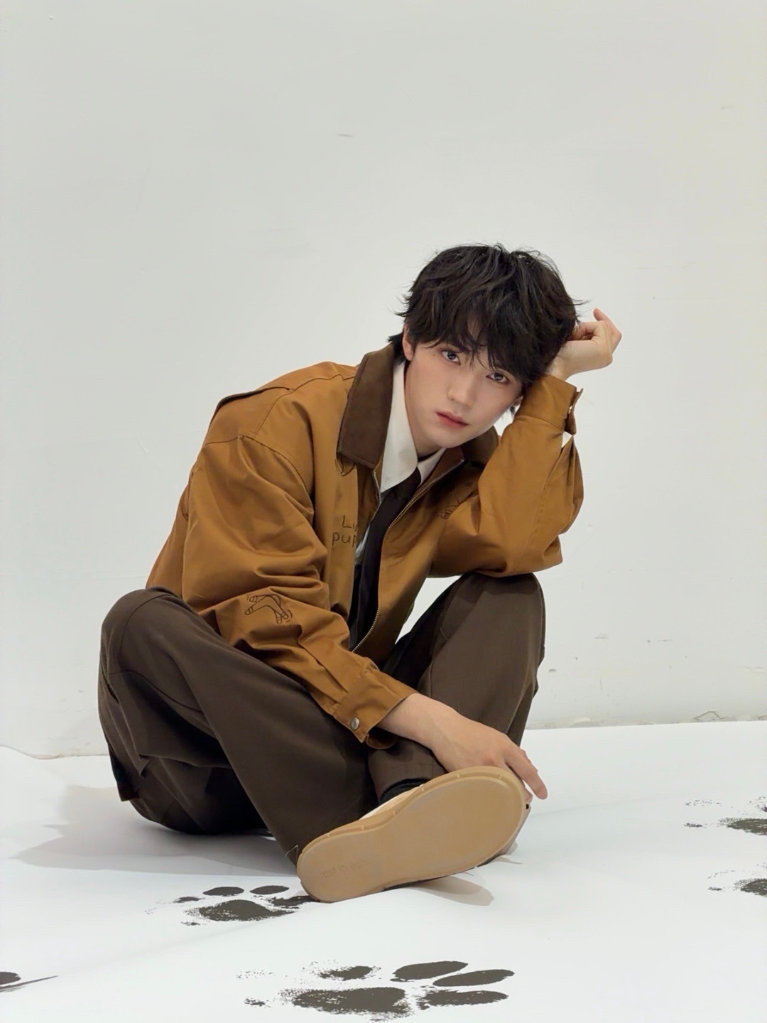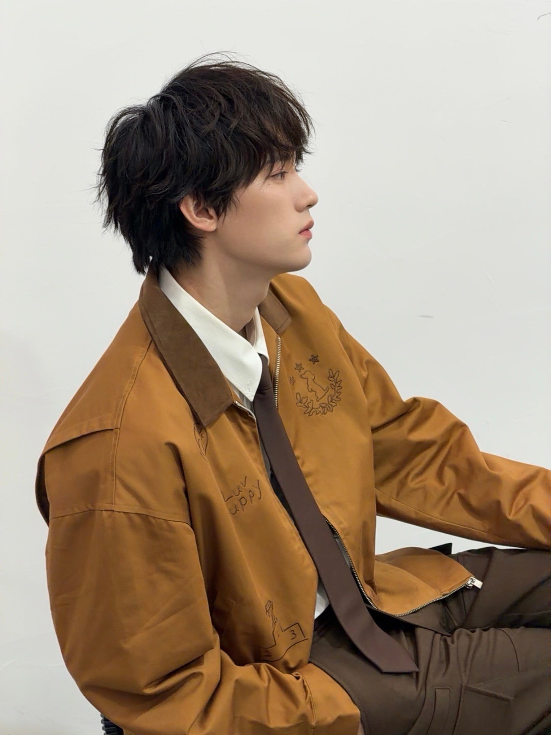 秋季的琥珀流光穿搭,搭配狗塑小卷毛。微长的睫毛,明亮的眼睛。好温暖干净的秋日年下男友!