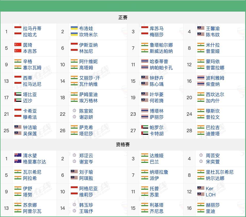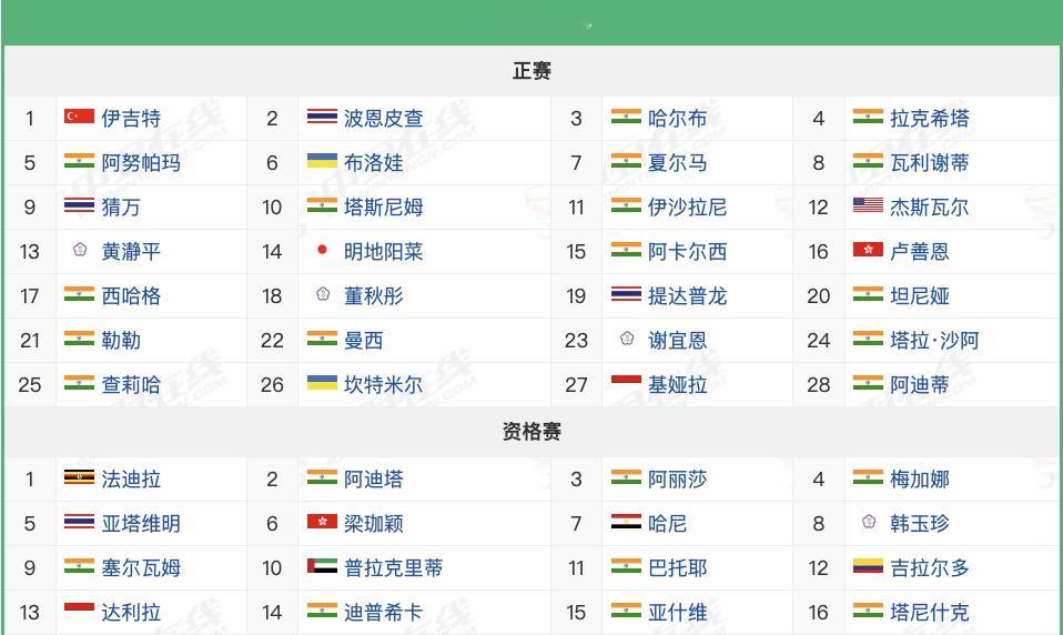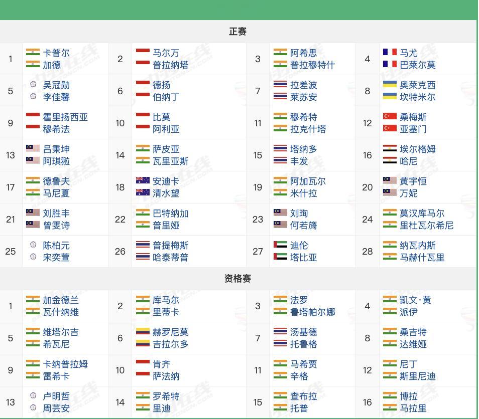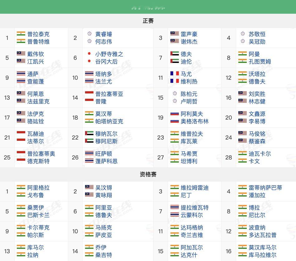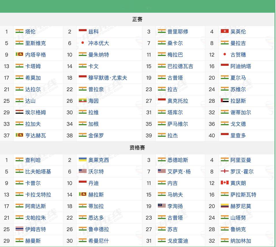 2025年古瓦哈蒂大师赛,12月2日-7日,超级100赛,各单项参赛球员如图,国