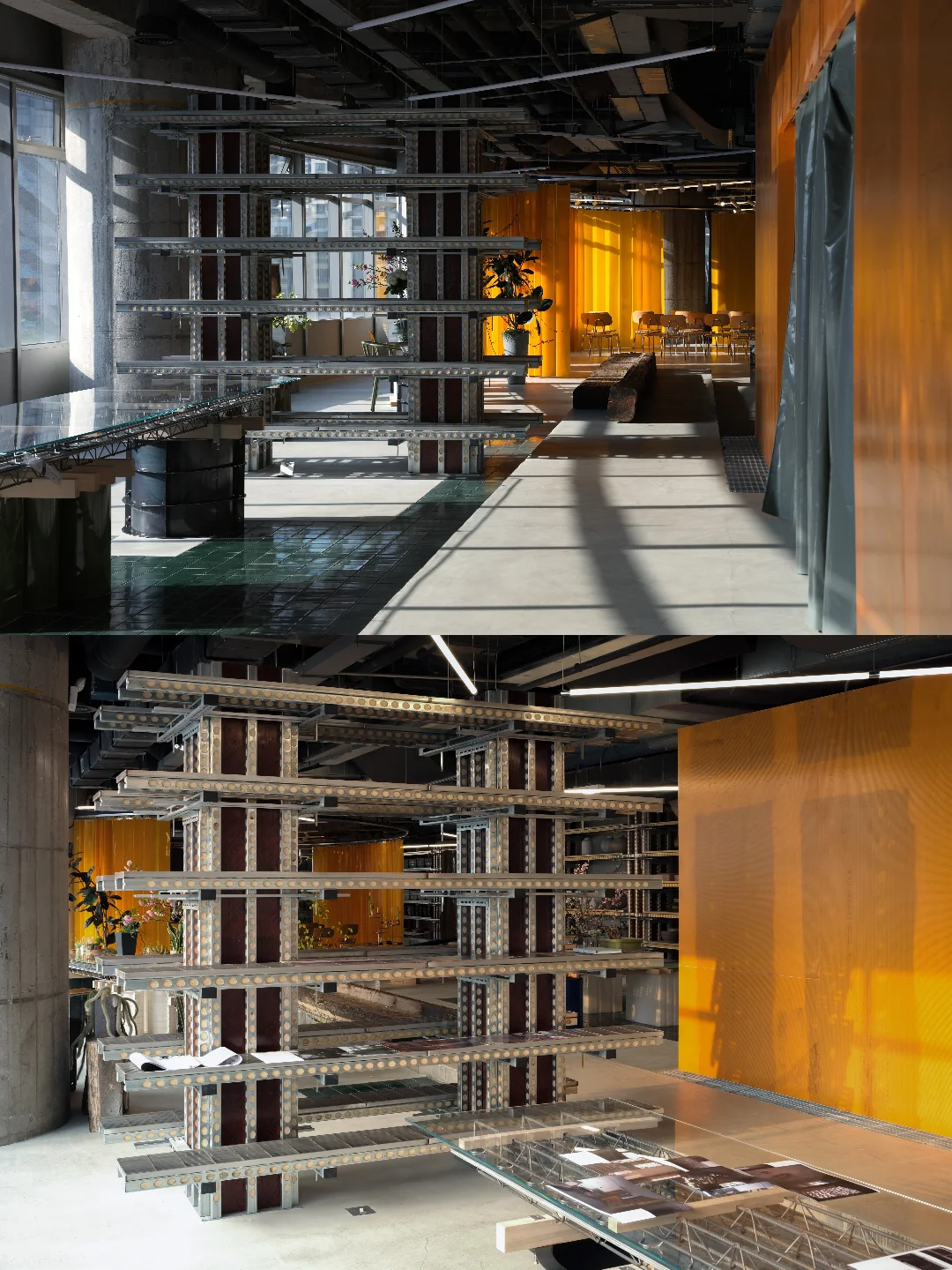 在889GLO设计成为一套提问机制。为何一块塑料膜能主导色彩语言?为何工业残余可以成为新的空间肌理?为何我们习惯忽略支撑一切的基础设施?谱观没有回答,但通过废材重组出的新秩序,观者开始在日常空间中追溯那些被遗忘的逻辑。