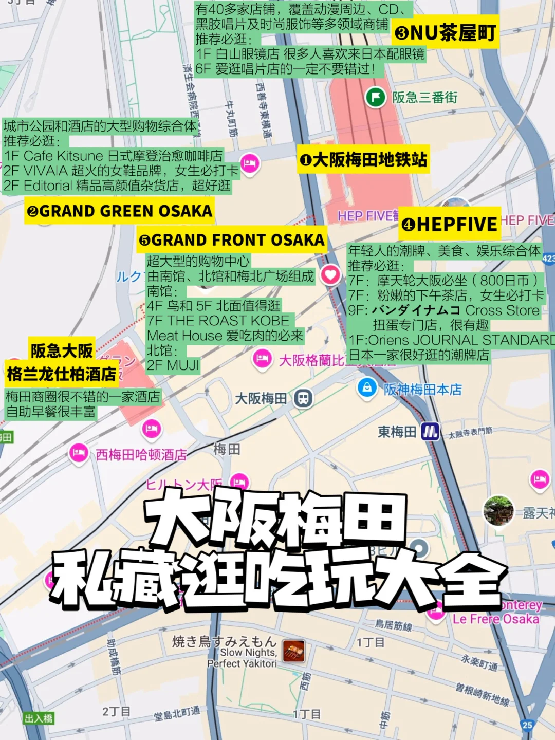大阪城➡️大阪天满宫➡️大阪梅田商区(逛街不错的地方,具体见图2)➡️梅田蓝天大厦(看日落)