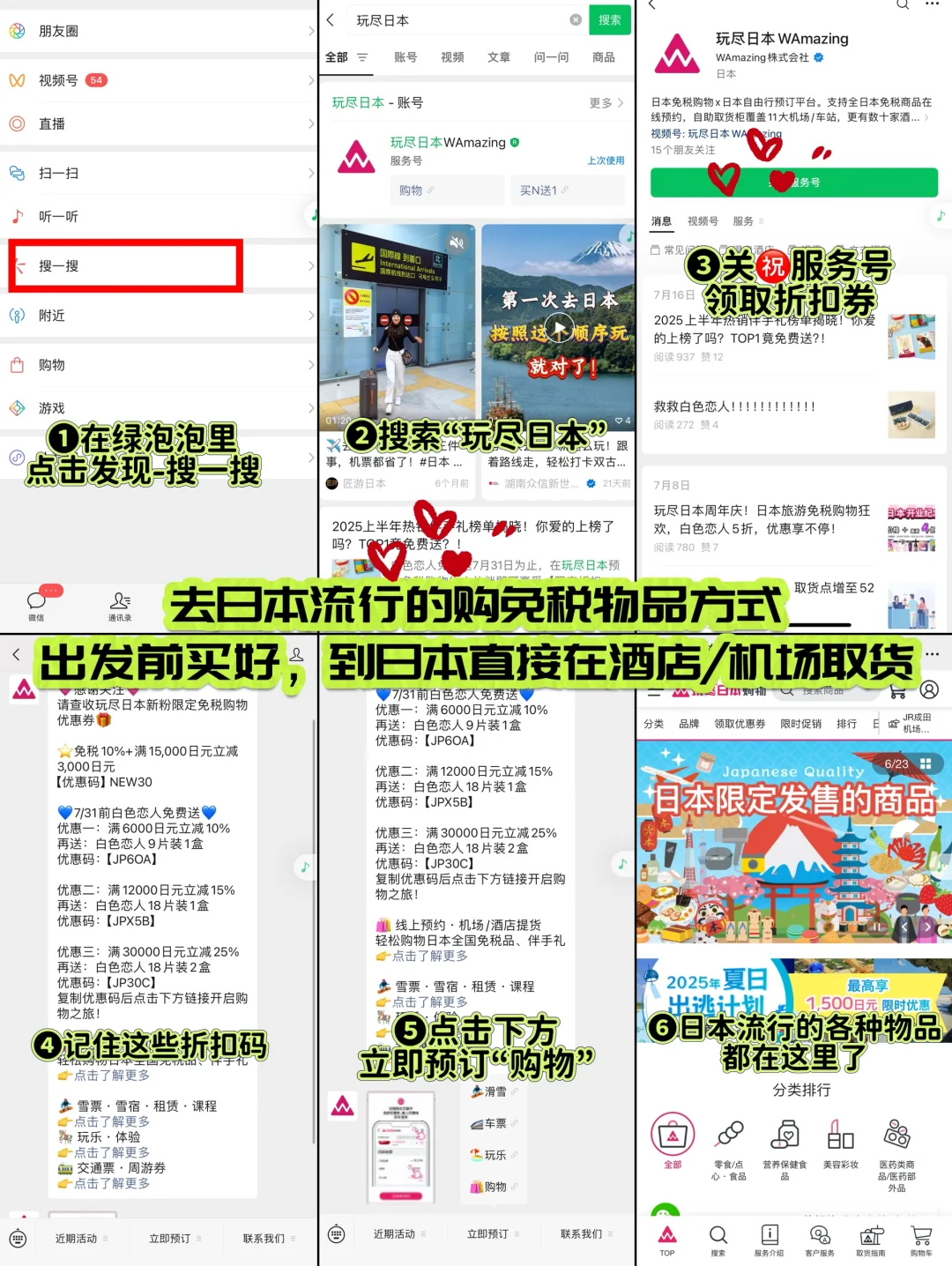 只需要在绿🫧上点击发现-搜一搜,输入【玩尽日本】,就可以在里面买免税商品了!记得一定要关🐷,这样会拿到3000日币立减券