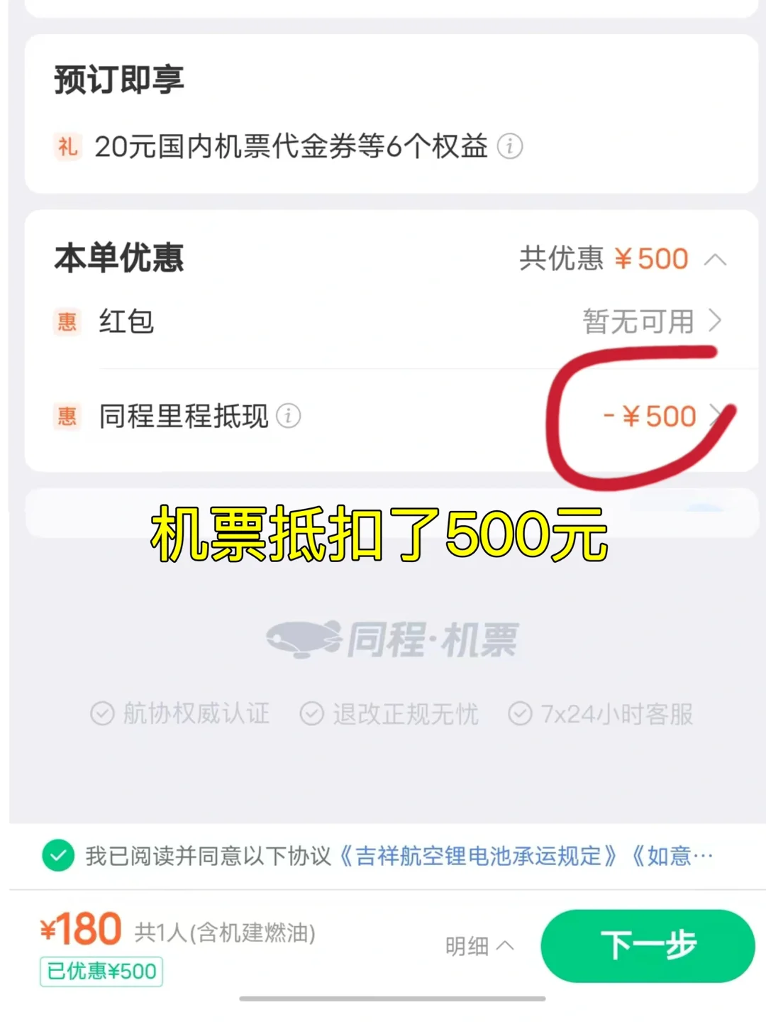 家人们谁懂啊?没想到这次春节买机票付款时发现里程兑换抵扣了500,返现了20,这也太给力了!
