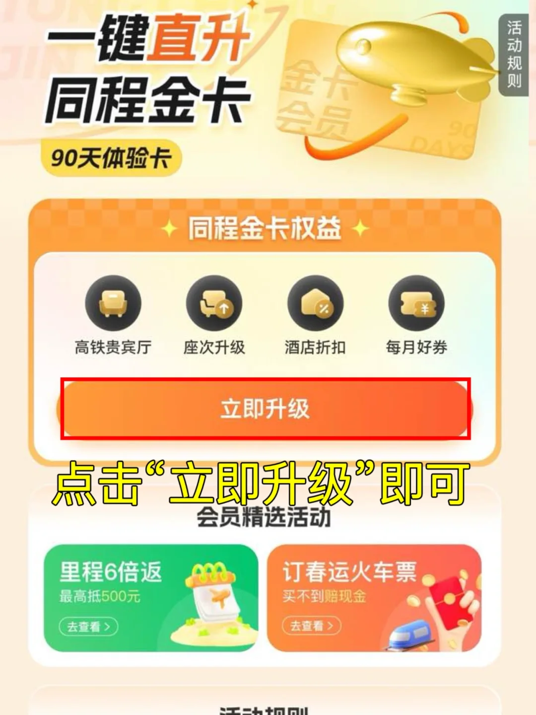 🎉春运期间同程金卡升级0门槛,无需任何条件!