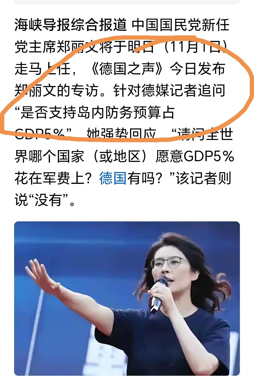 配这张图不是想说郑丽文的主张是什么,她的主张是什么不重要。我想说的是另外一件事。看看这是一家德国媒体。 最近一段时间小德子跳的有点张狂。前段时间小德子不知天高地厚地妄言台湾有事就是德国有事,不准我们武力收台,还想访华,结果没有人搭理他,只好无趣地自己取消了计划。 小德真没有搞清楚自己的位置,要不看看保时捷的财报有利于你们清醒一下自己的头脑。 以后就会知道饭可以乱吃话不能乱说,有些话题不是你们小小德国可以碰触的。 点右上角关注我,我们一起去看这个魔幻的世界