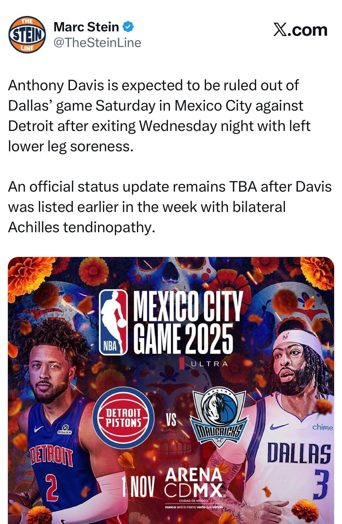 不打!浓眉缺席与活塞的比赛。本周早些时候,浓眉已被列入双侧跟腱腱病伤病名单,目