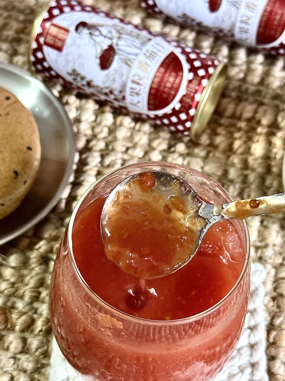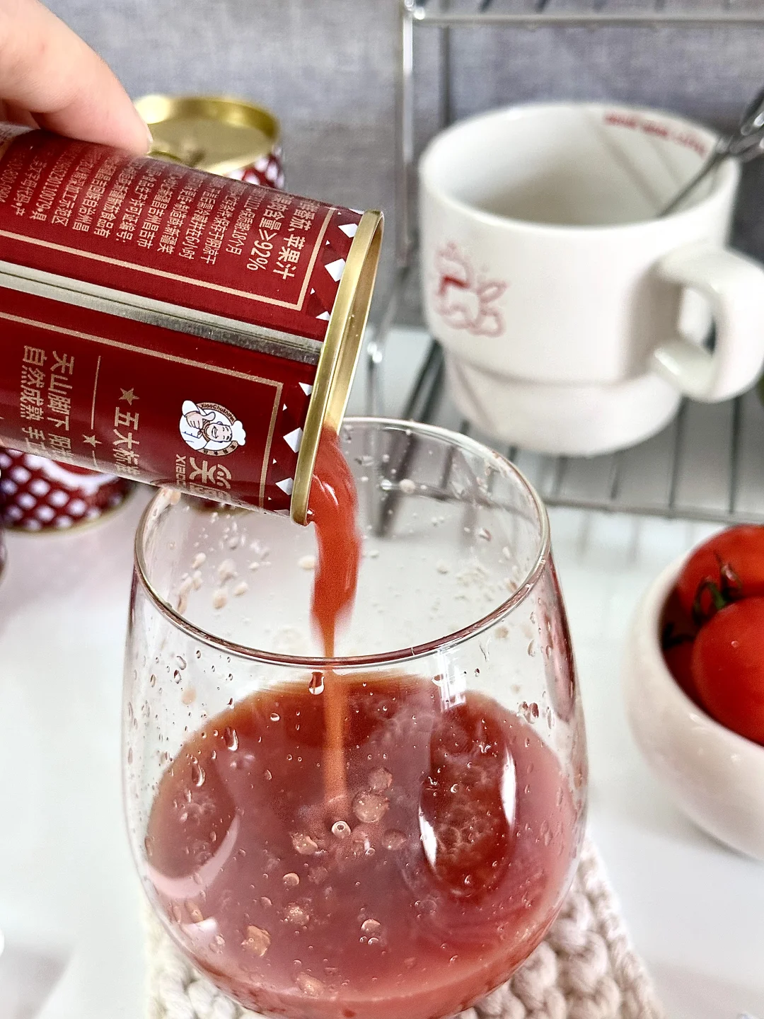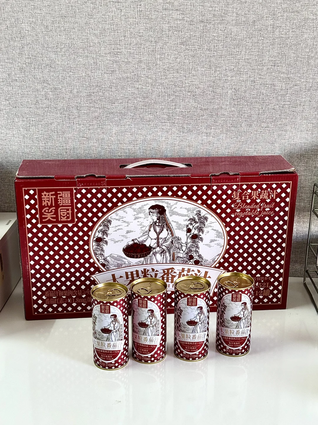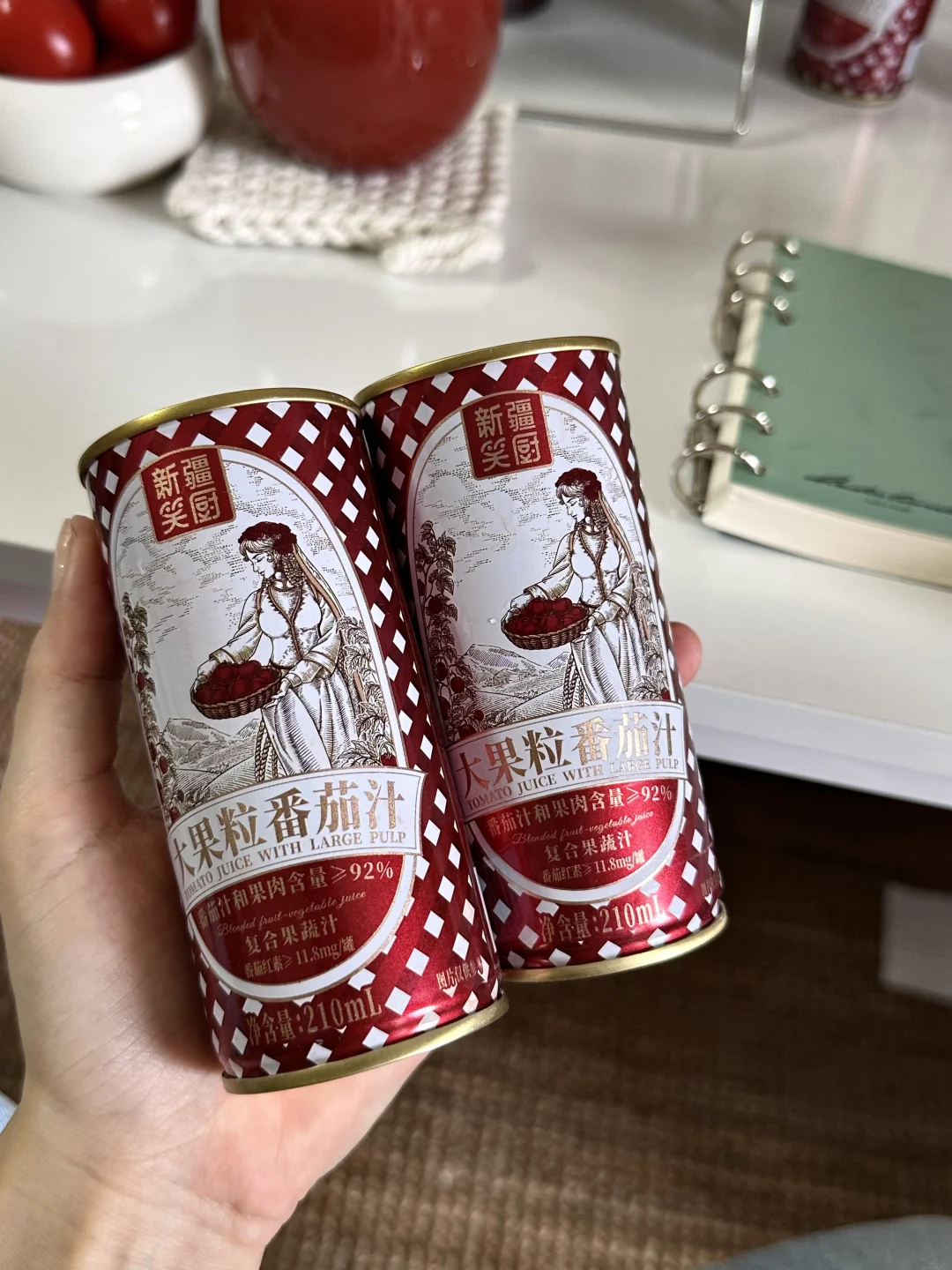 说真的,番茄汁还是第一次喝~,这新疆笑厨番茄汁真挺ok!拧开就闻到新鲜番茄香,喝着还有咯吱咯吱的果肉粒,像刚摘的沙瓤番茄似的,没有工业甜腻味,酸酸甜甜的,喝完立马就下单了一箱。