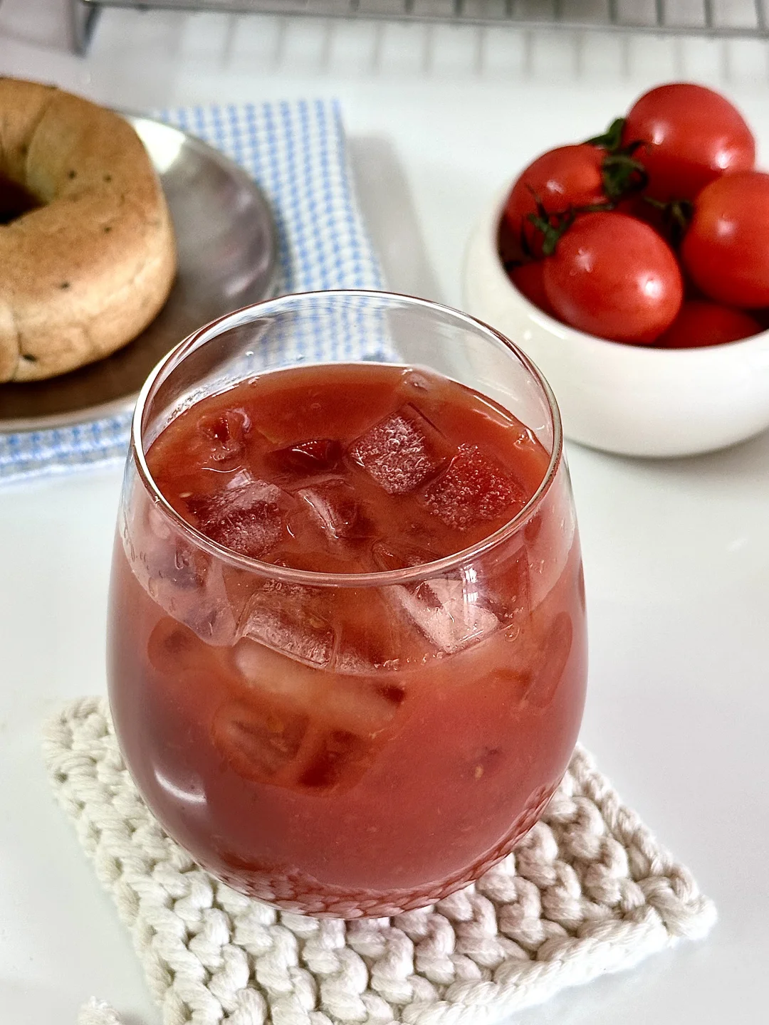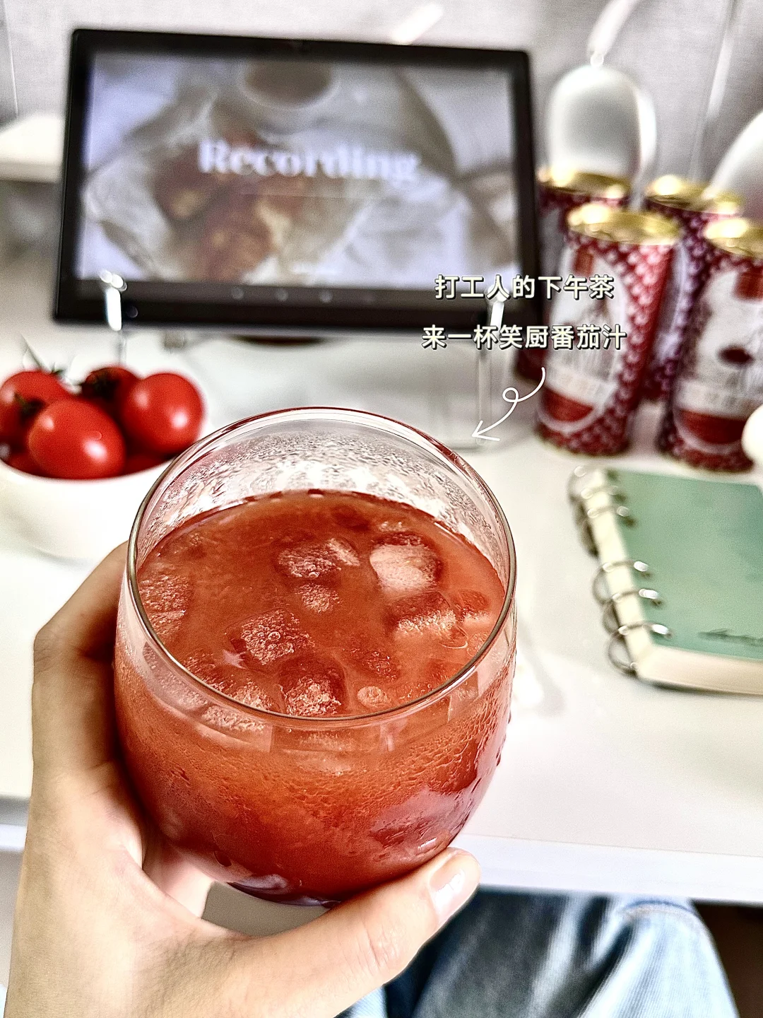 同事见我这样,分了瓶笑厨番茄汁让我试试~