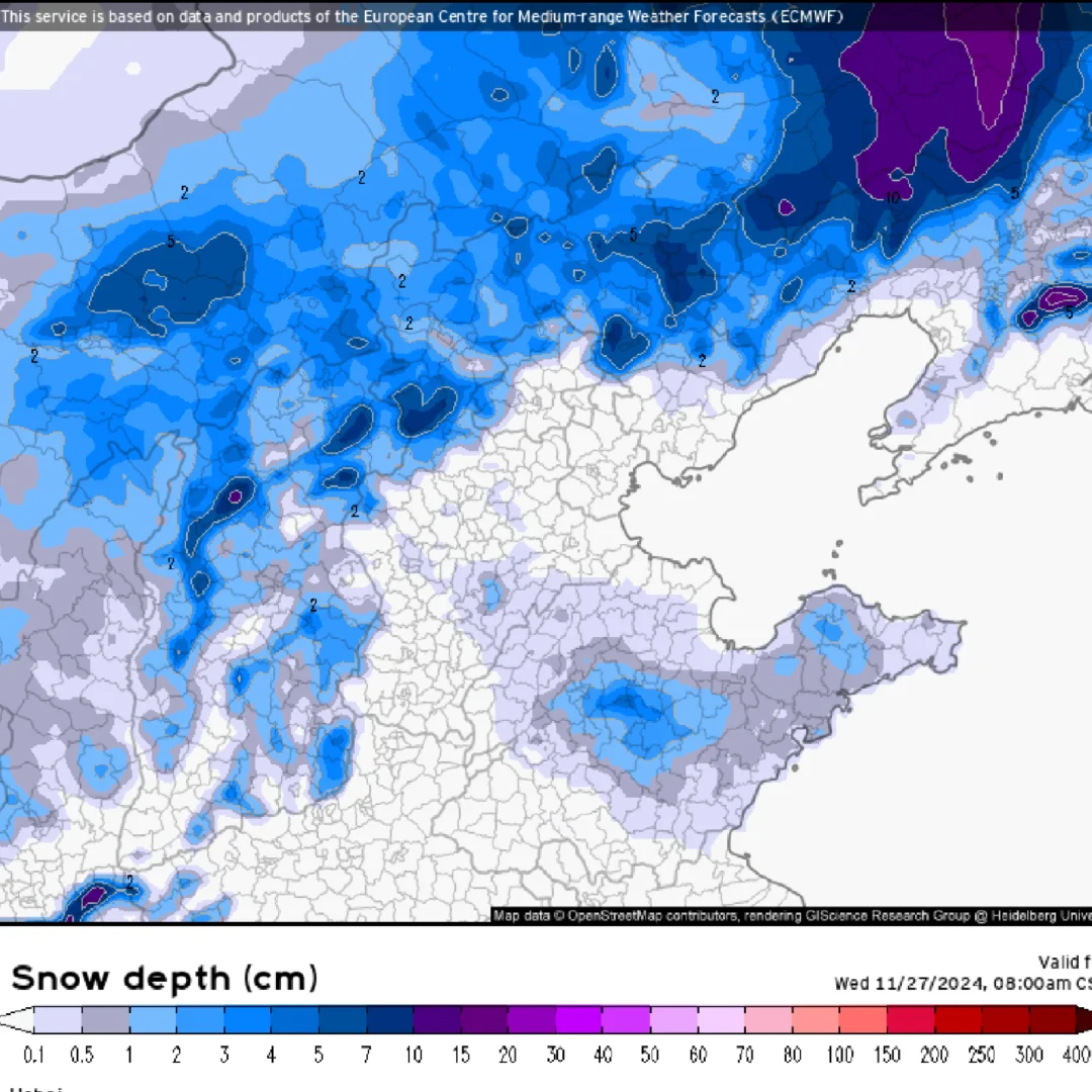 26~28日第二波冷空气(主体)南下,大风降温更加明显,此时华北附近有水汽残留,在高空扰动气流的影响下,我省北部地区有望出现降雪。
