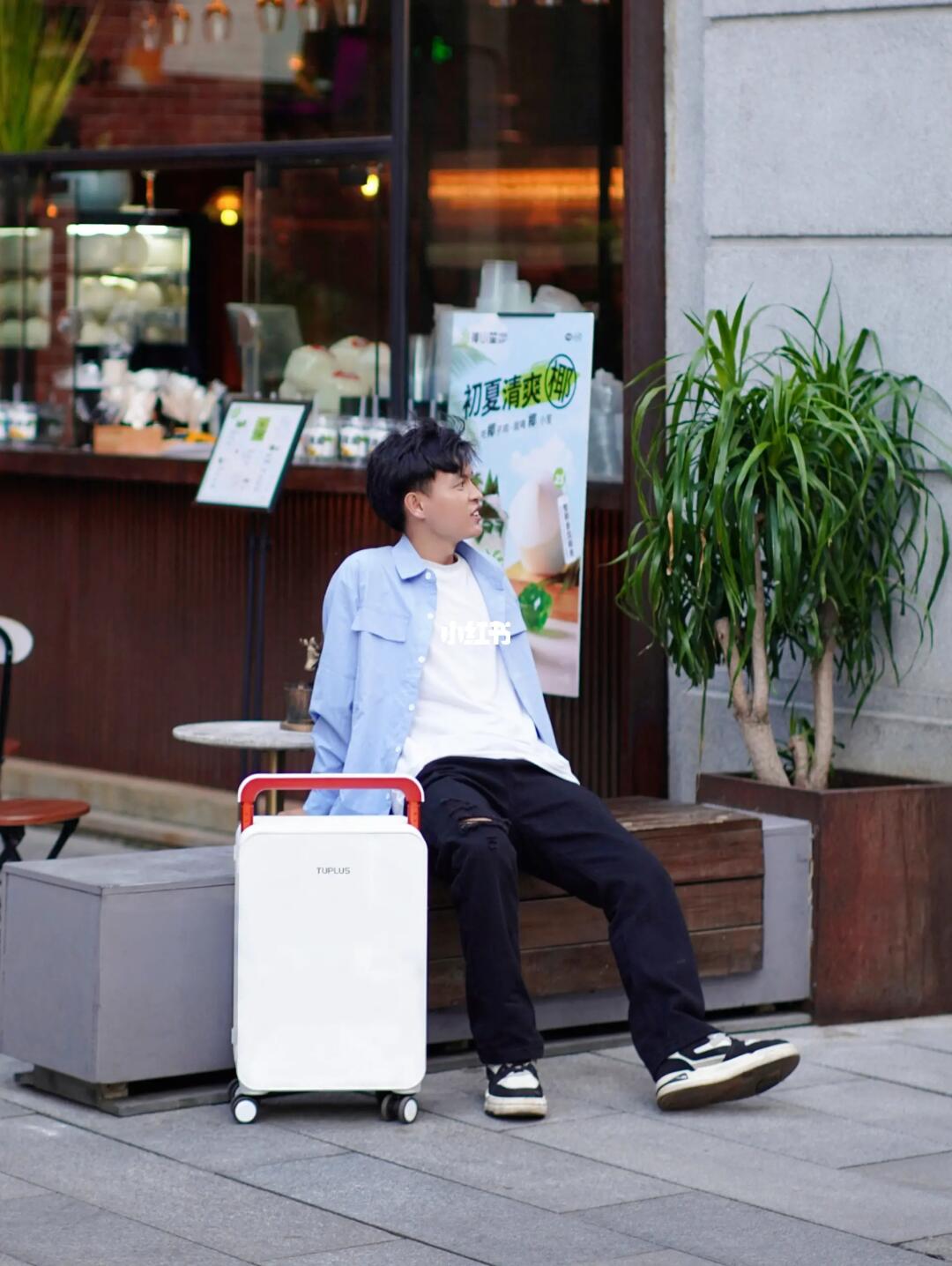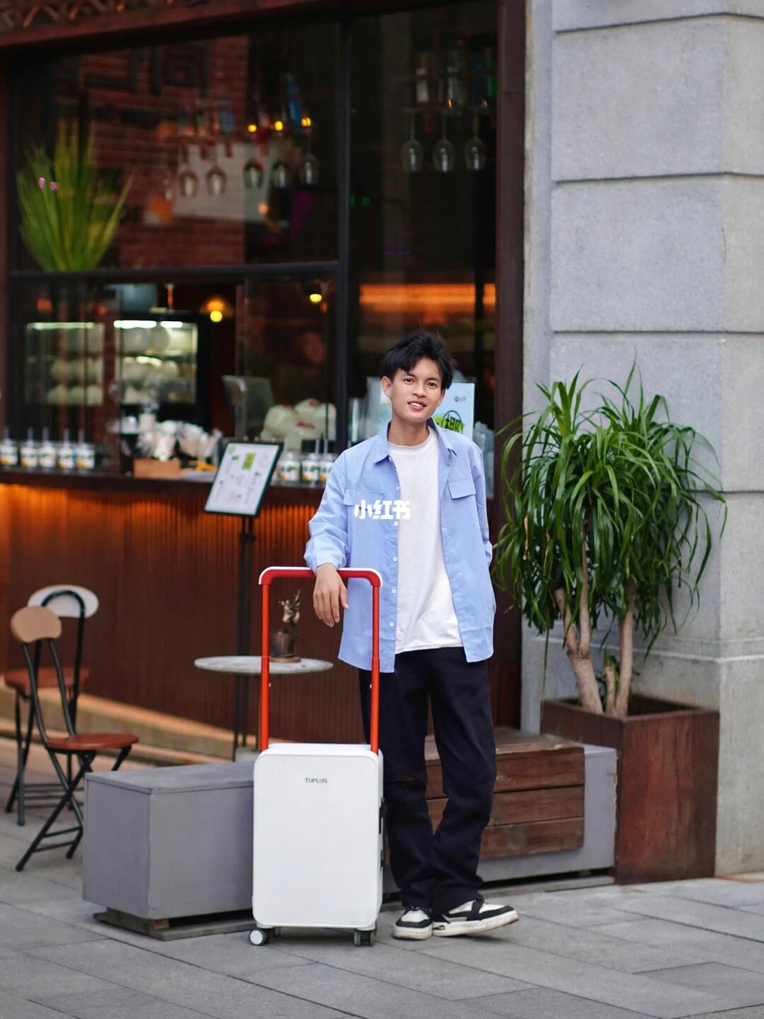 3⃣️拍照时不要放过身边的任何道具,像我这种颜控,每次都会忍不住跟我的行李箱合影几张,真的很爱这个橙色宽拉杆的设计,简约又显的有格调。而且拉杆在两边,让收纳空间变的更大了。