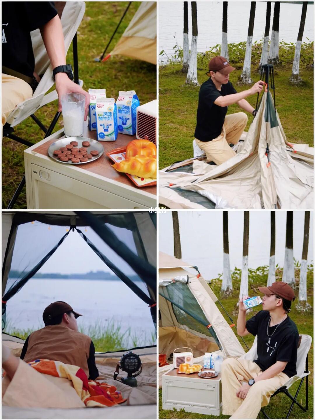 3⃣露营装备我比较讲究轻装出行,所以我只带了便携帐篷跟两张月亮椅喝一个小箱子。一个背包就能全部装下了,重量不到10斤。